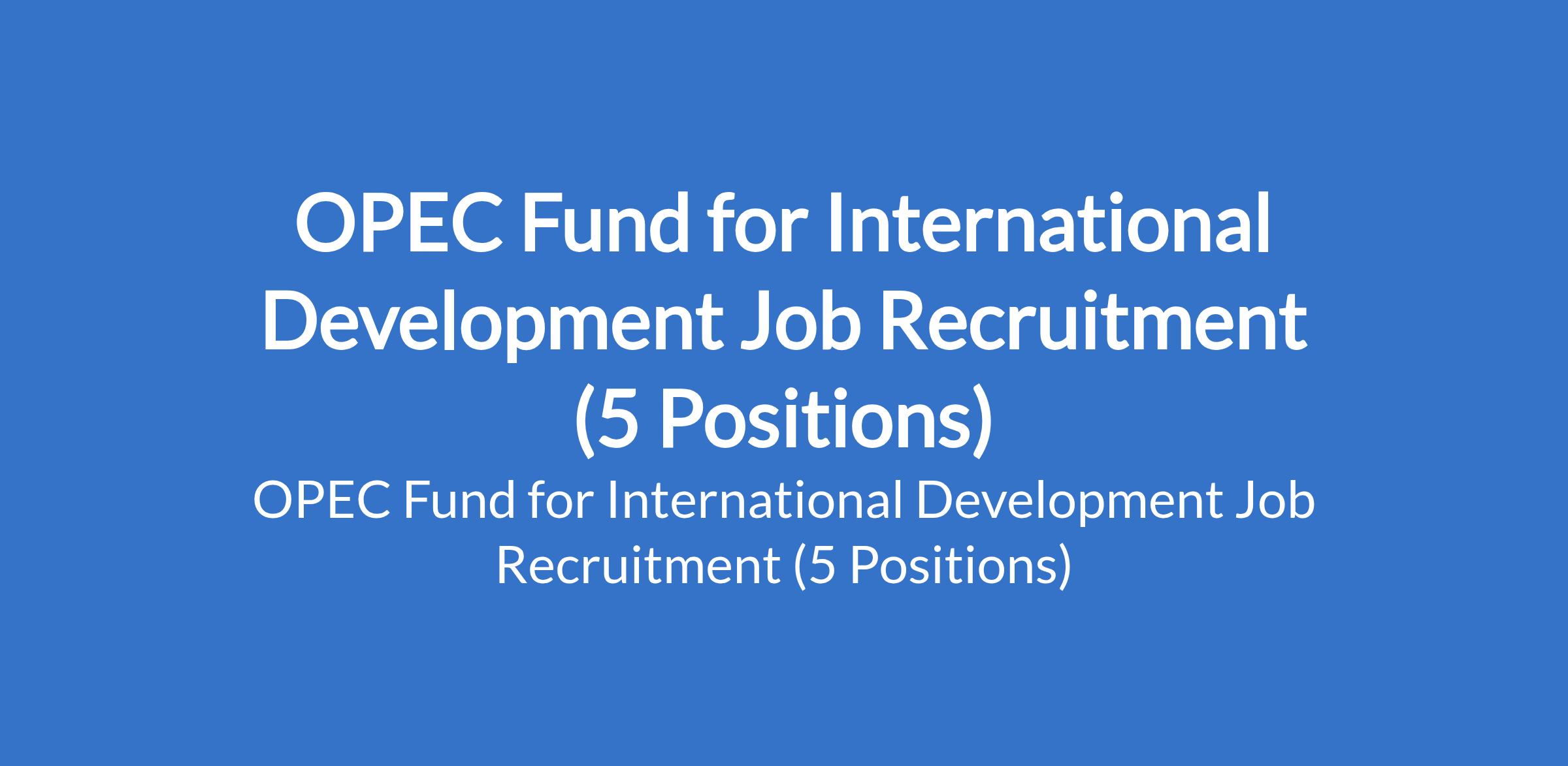 OPEC Fund for International Development is currently recruiting suitably qualified candidates to fill the following positions in Austria: Head, Total Rewards, Analyst - Multiple, Executive Assistant - Multiple, Senior Counsel - Treasury / Capital Markets, Investment Manager, Business Development Unit.