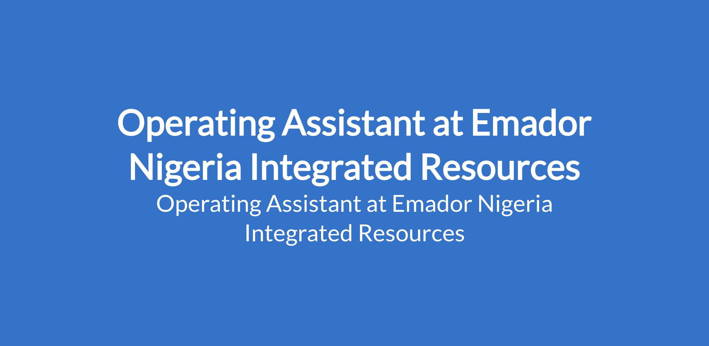 Emador Nigeria Integrated Resources is recruiting to fill the position of: Operating Assistant. The position is located in Ikeja, Lagos State. Salary: N150,000 - N200,000 monthly. Interested candidates should possess relevant qualifications with proven work experience as an Operations Assistant or similar role.