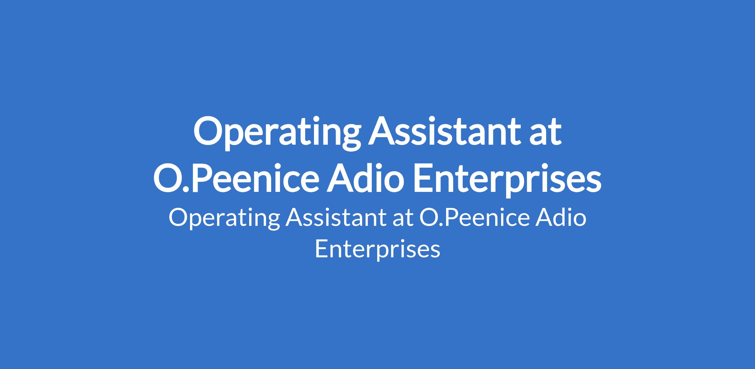 Operating Assistant at O.Peenice Adio Enterprises