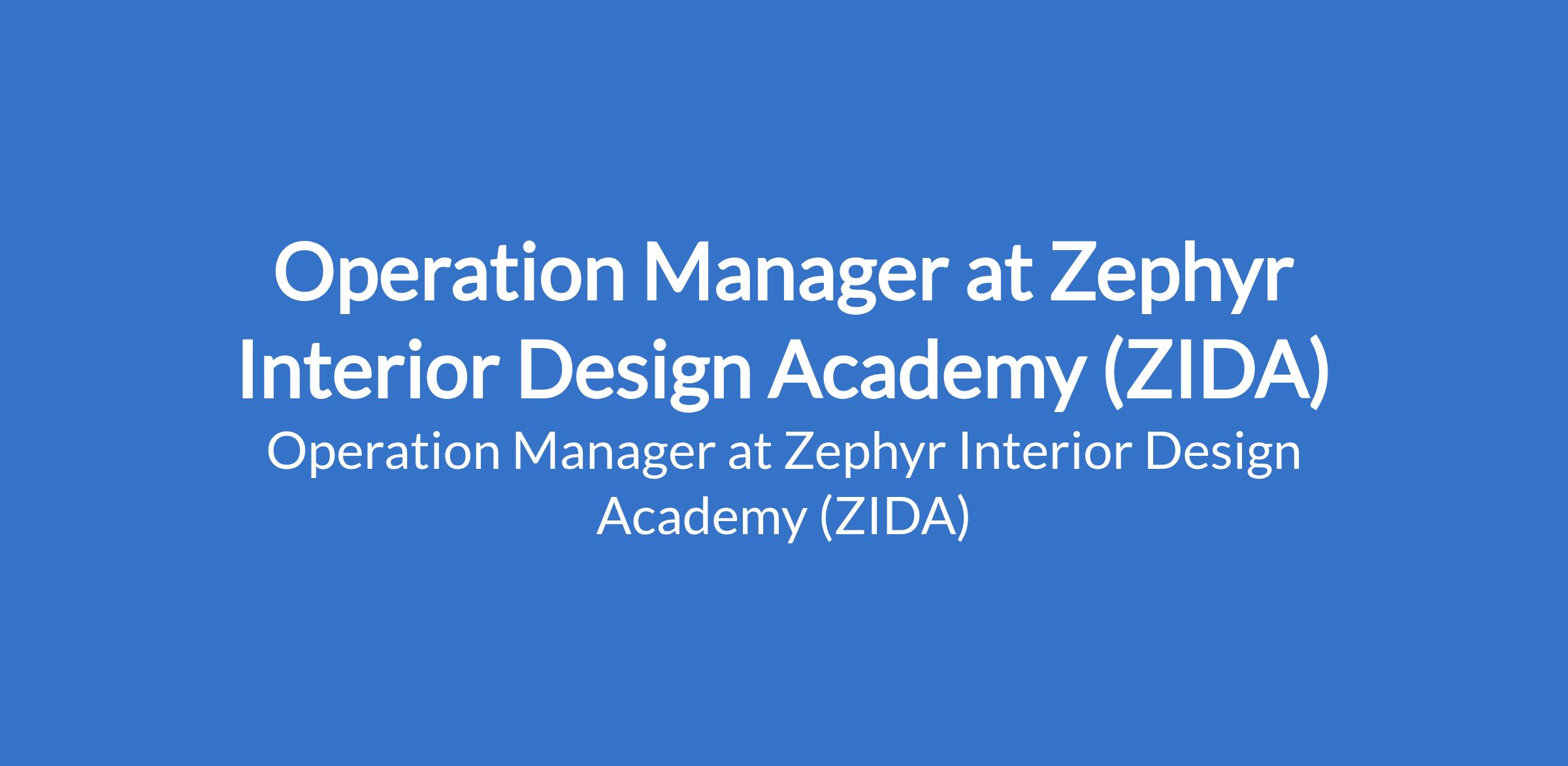 Zephyr Interior Design Academy (ZIDA) is recruiting to fill the position of: Operation Manager. The position is located in Abuja (FCT). Interested candidates should possess a Bachelors Degree in Business Administration, Management, Operations, or related field; a Masters Degree is a plus with 5 - 7 years of experience in operations management or a similar role