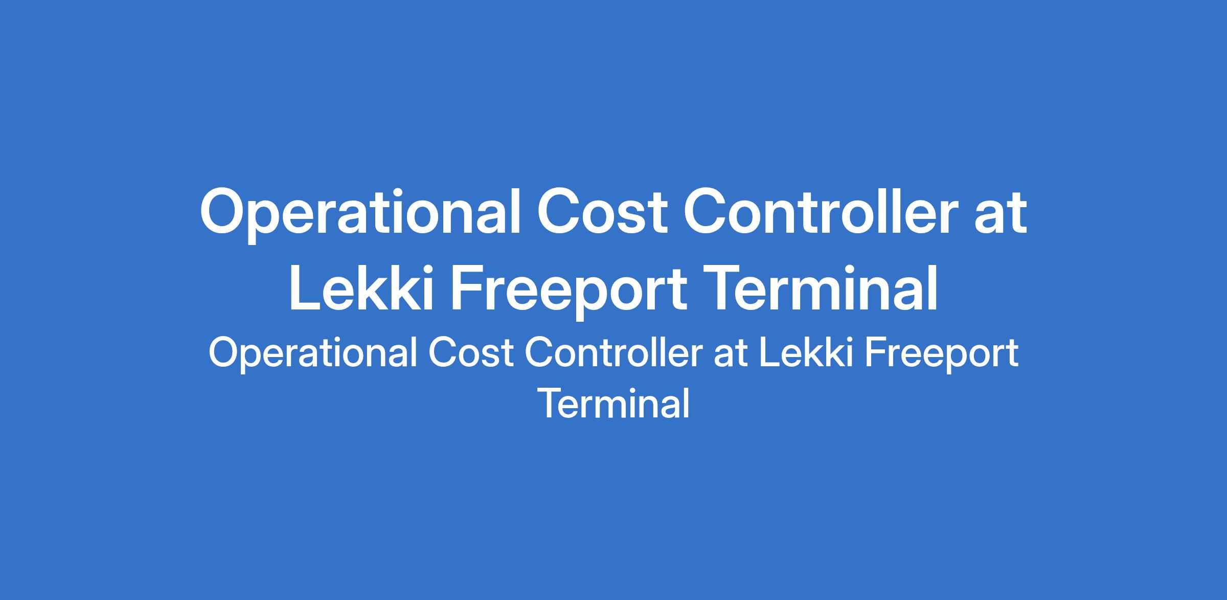 Lekki Freeport Terminal is recruiting to fill the position of: Operational Cost Controller. The position is located in Ibeju Lekki, Lagos State. Interested candidates should possess an HND / BSc in Accounting, Finance, Economics, Engineering, or related discipline with 3 6 years experience in cost control, operational finance, or terminal operations.