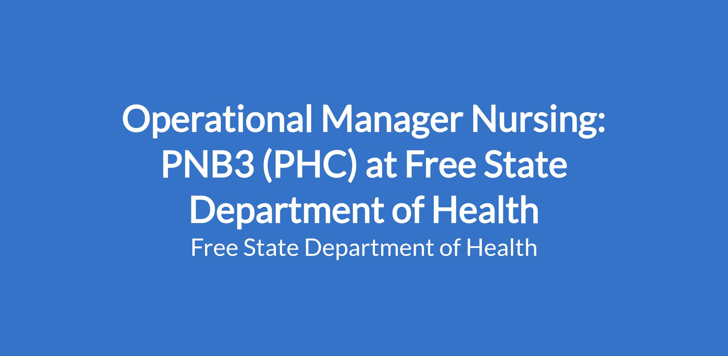 A minimum of 9 years appropriate /recognizable experience in nursing after registration as a professional nurse with SANC. A least 5 years of the period referred to above must be appropriate/recognizable experience in nursing management. Current registration with the SANC 2025/2026.