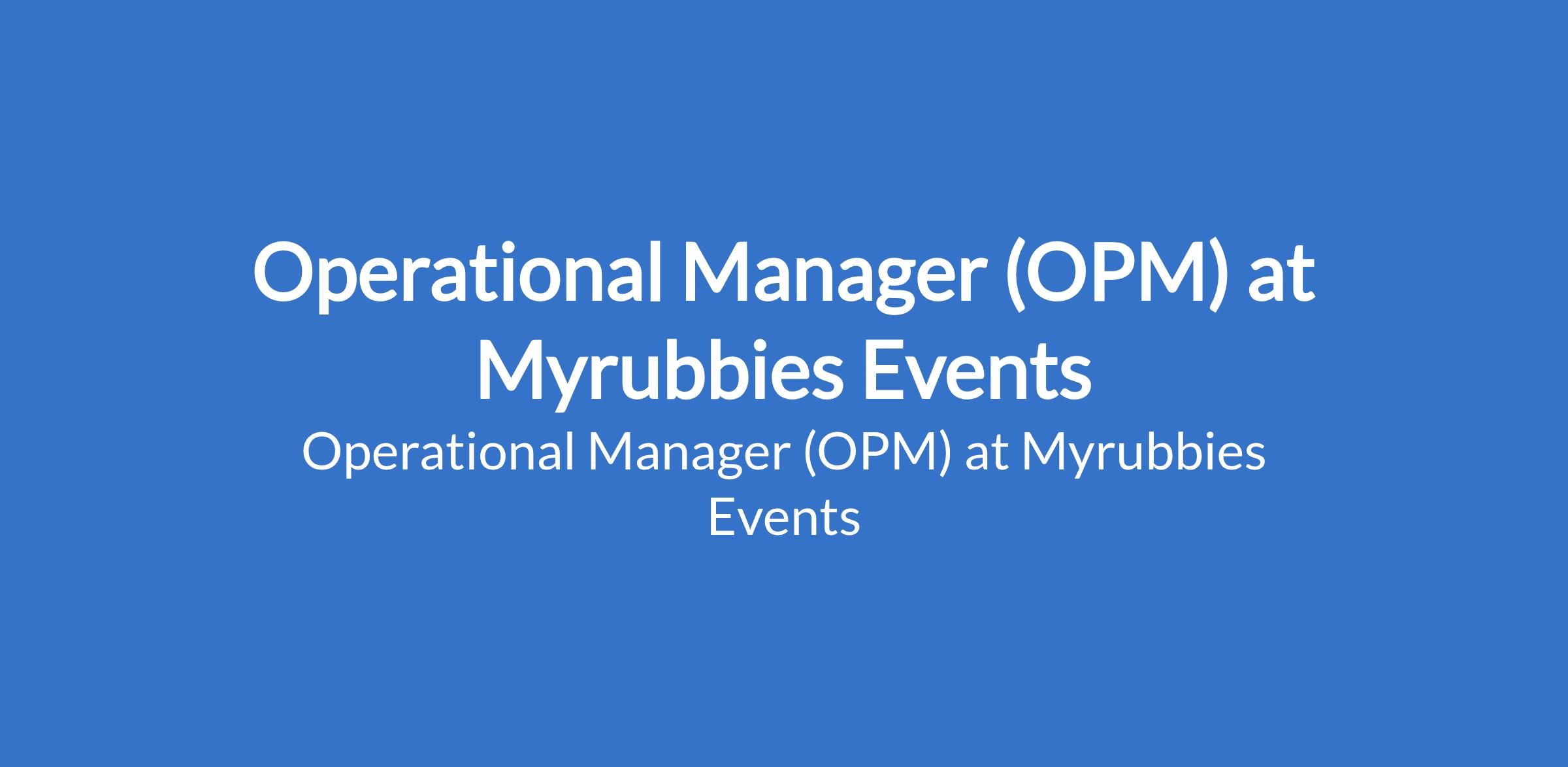 Operational Manager (OPM) at Myrubbies Events