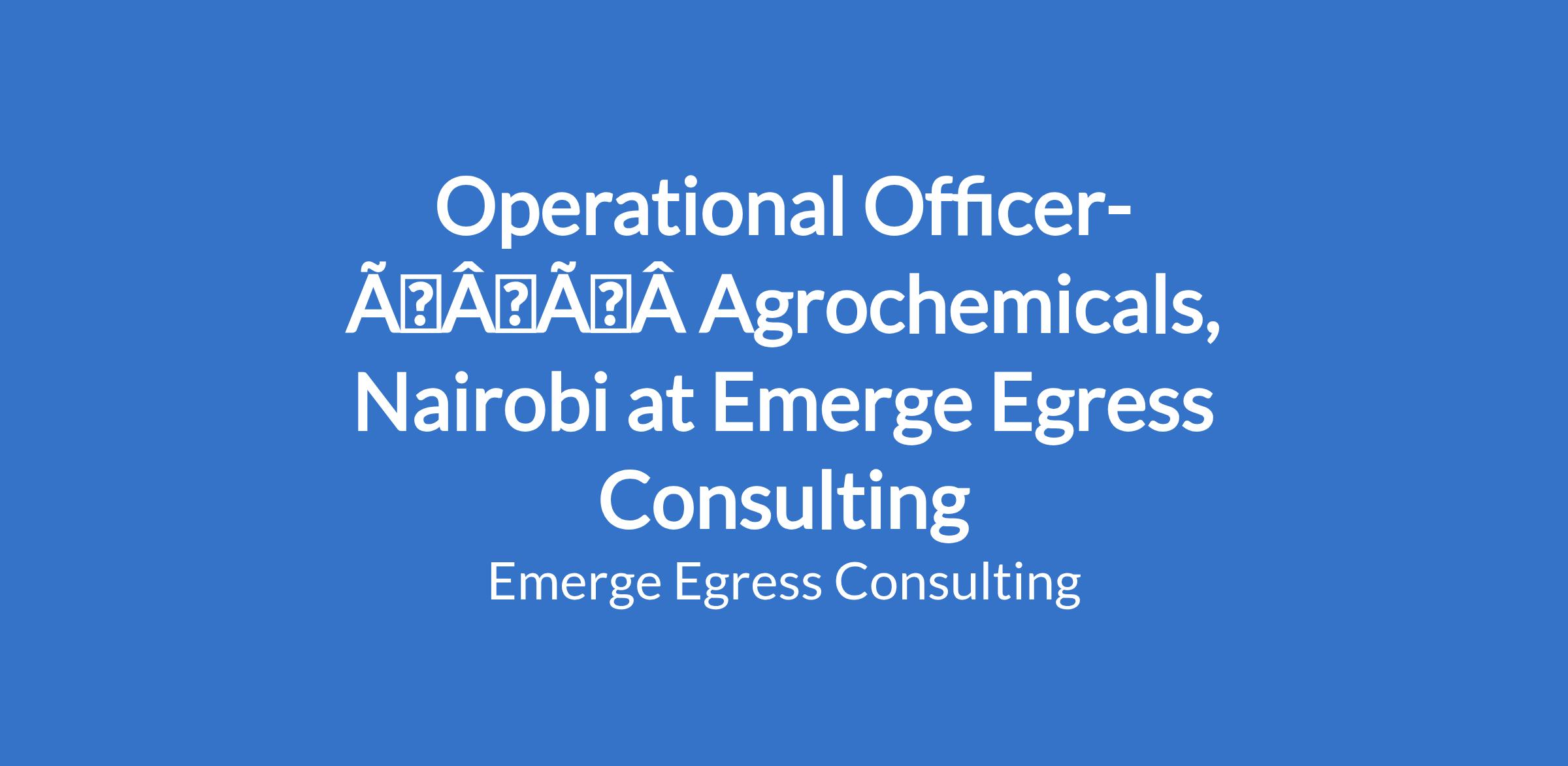 Our client in the Agrochemicals space is seeking an Operations Officer. You are essentially the engine room of the business overseeing the operational activities at every level of the organization to ensure they run smoothly.