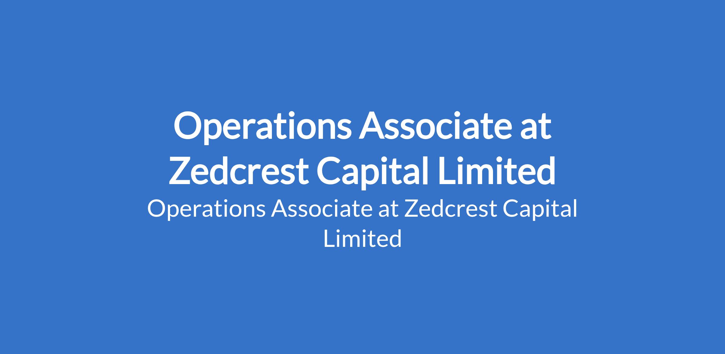 Zedcrest Capital Limited is recruiting to fill the position of: Operations Associate. The position is located in Lagos State. Interested candidates should possess a Degree in Agriculture, Supply Chain, Logistics, Business Administration, or a related discipline with 2 - 4 years of experience in operations, logistics, agribusiness, or commodities related roles is preferred.