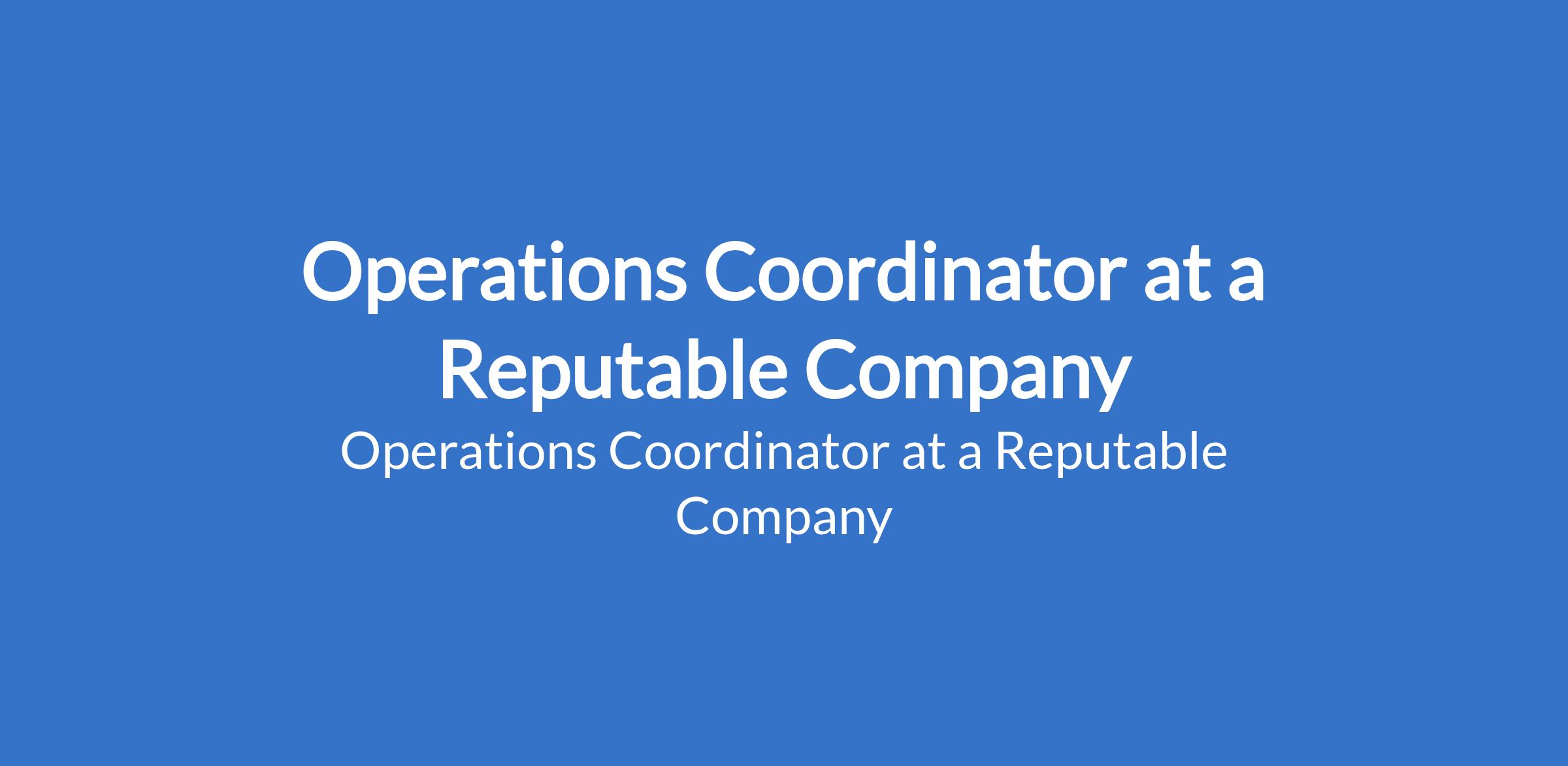 Operations Coordinator at a Reputable Company