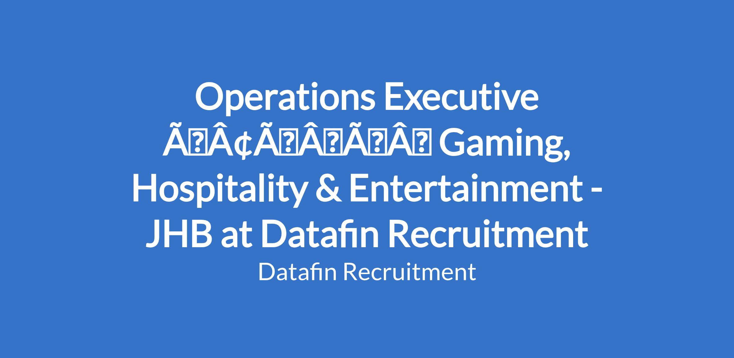 Operations Executive âÃÂàGaming, Hospitality & Entertainment - JHB at Datafin Recruitment