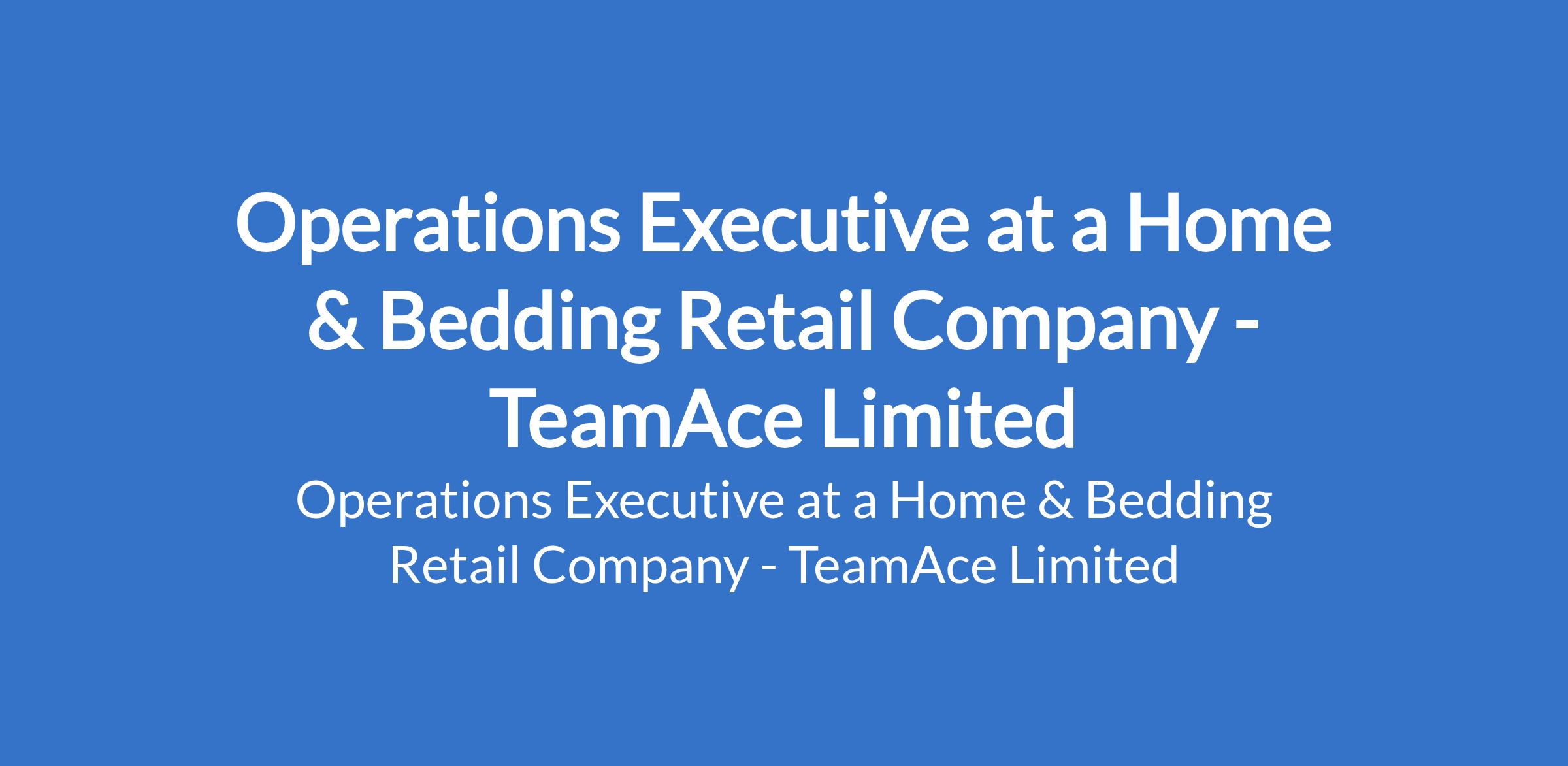 TeamAce Limited - Our client, a reputable organization in the Home & Bedding Retail sector is recruiting to fill the position of: Operations Executive. The position is located in Surulere, Lagos State. Salary: N140,000 - N150,000 monthly. Interested candidates should possess minimum of an HND / Bachelors Degree in Business Administration or related fields with a minimum of 2 years experience in operations, customer service, or retail administration roles, and must reside in Surulere or its immediate environs.