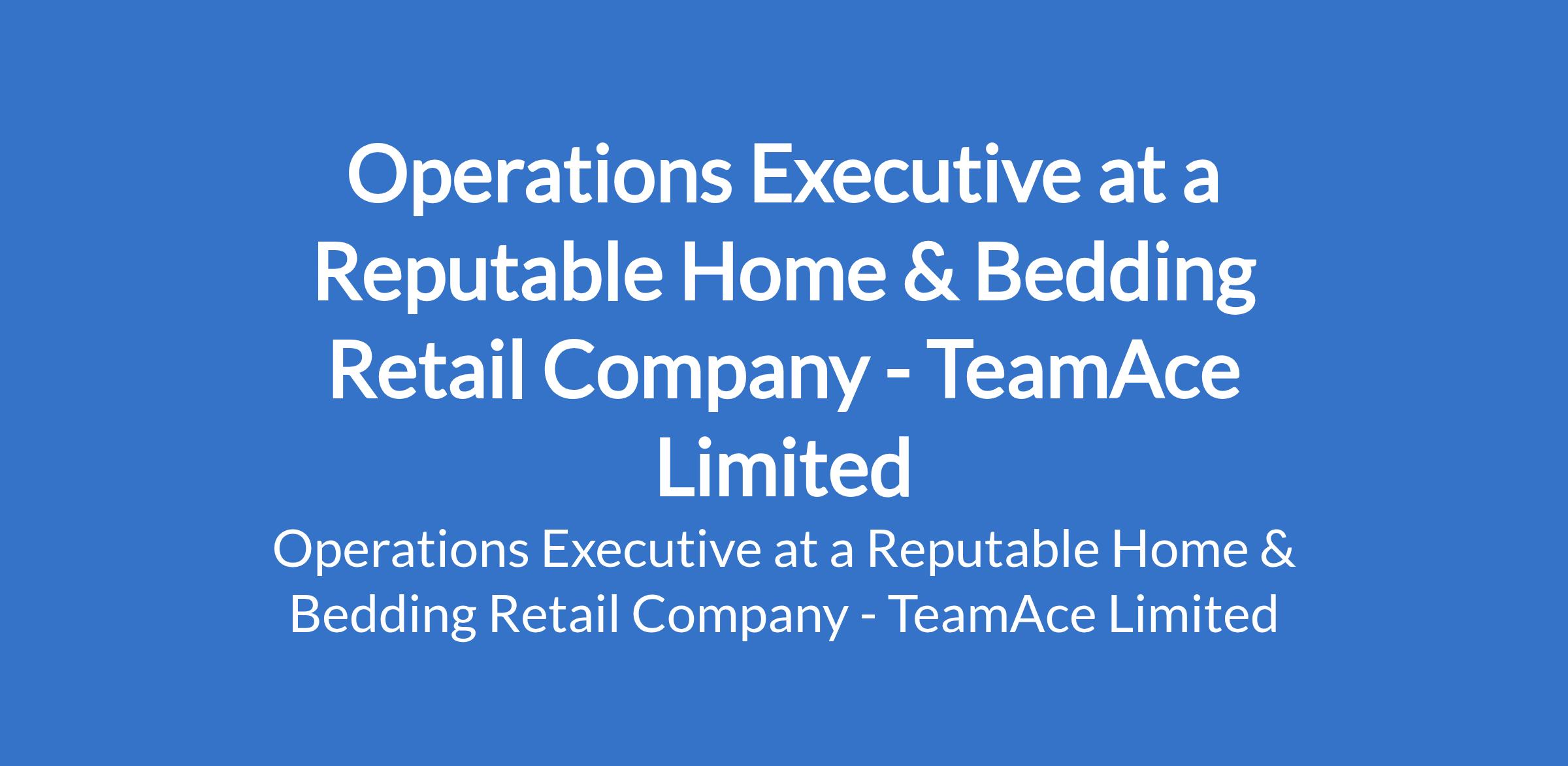 TeamAce Limited - Our client, a reputable organization in the Home & Bedding Retail sector is recruiting to fill the position of: Operations Executive. The position is located in Surulere, Lagos State. Salary: N140,000 - N150,000 per month. Interested candidates should possess a minimum of HND / Bachelors Degree in Business Administration or related fields with a minimum of 2 years experience in operations, customer service, or retail administration roles.