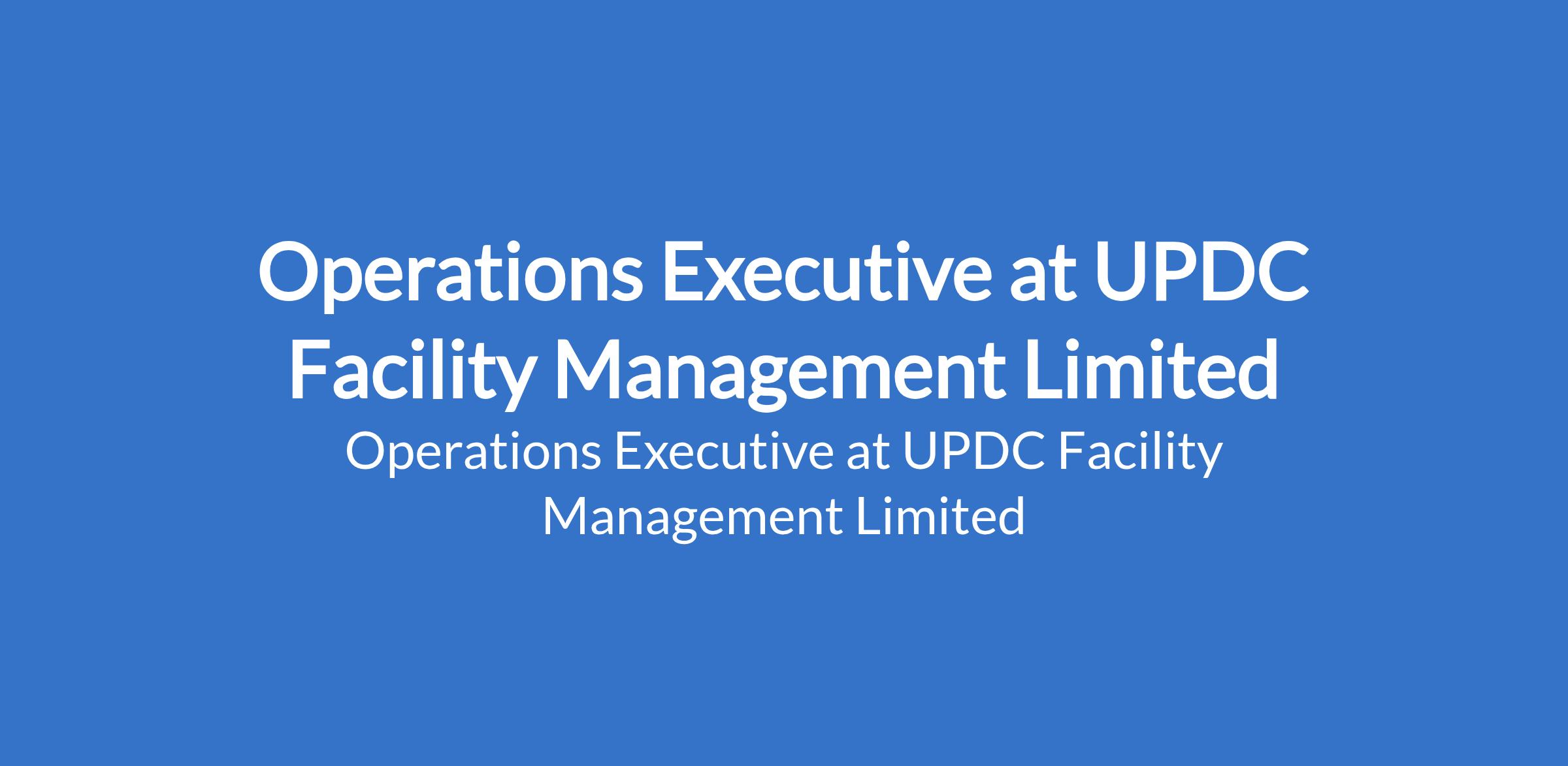 UPDC Facility Management Limited is recruiting to fill the position of: Operations Executive. The position is located in CMS, Lagos State. Interested candidates should possess a Bachelors Degree in Engineering, Estate Management, or a related field; Certifications such FMP, PMP is an advantage with 35 years experience in a facility management, maintenance, or operations position.