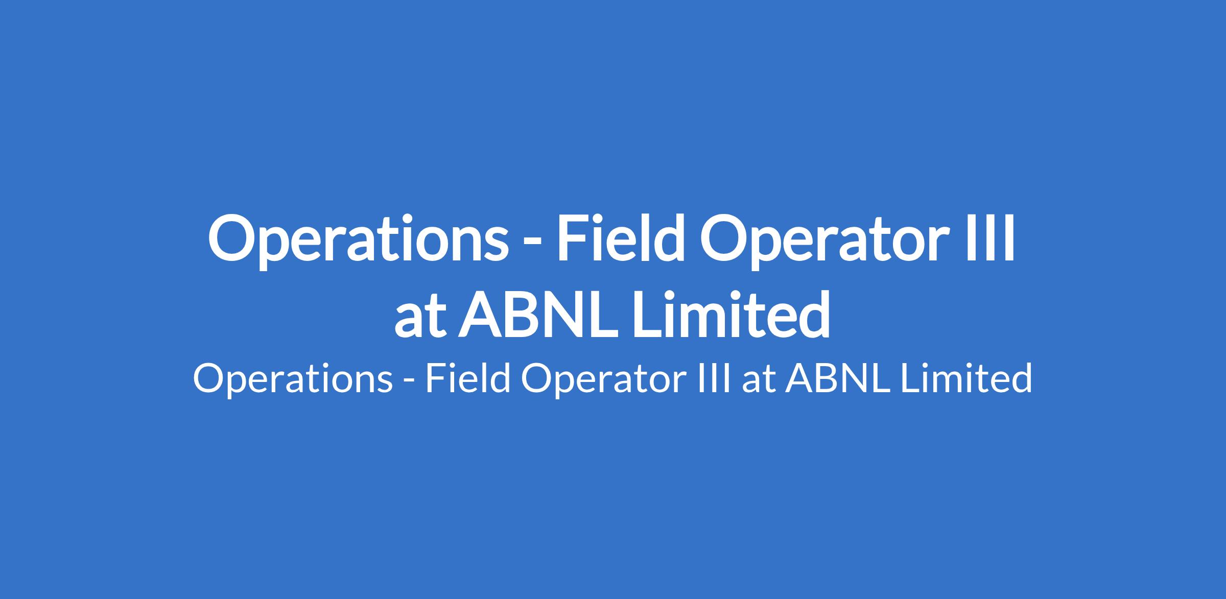 Operations - Field Operator III at ABNL Limited