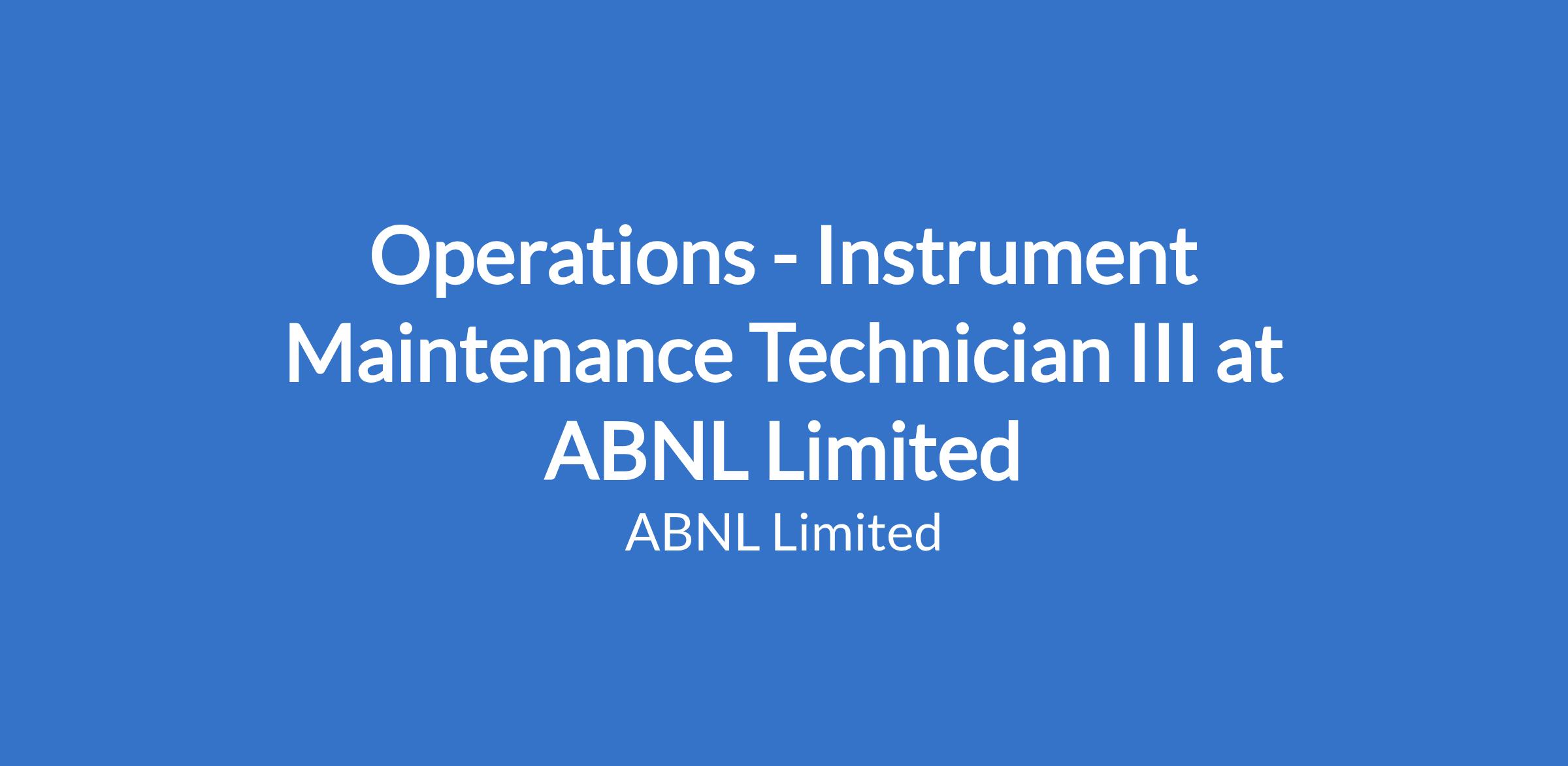 Operations - Instrument Maintenance Technician III at ABNL Limited