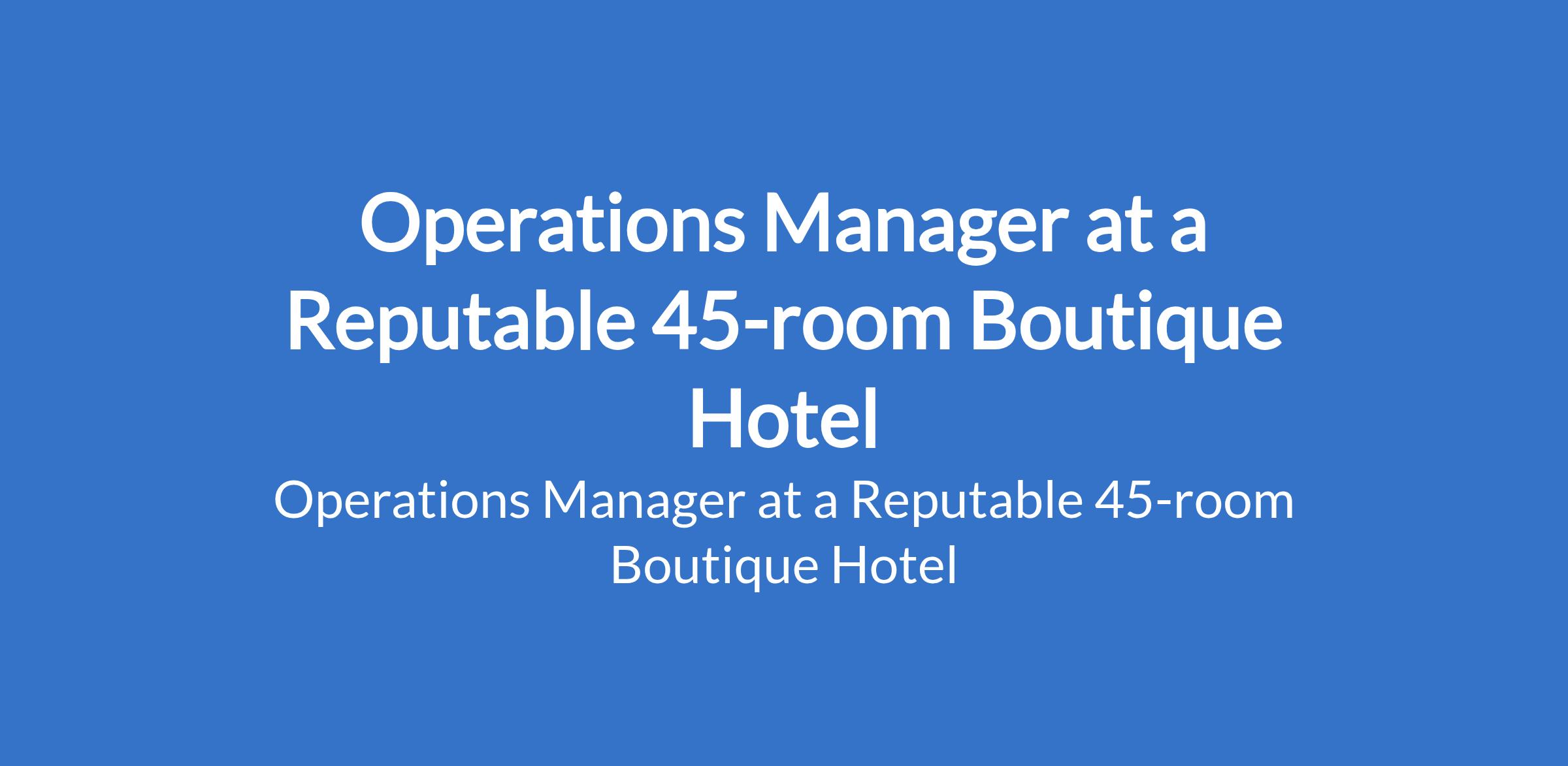 Operations Manager at a Reputable 45-room Boutique Hotel