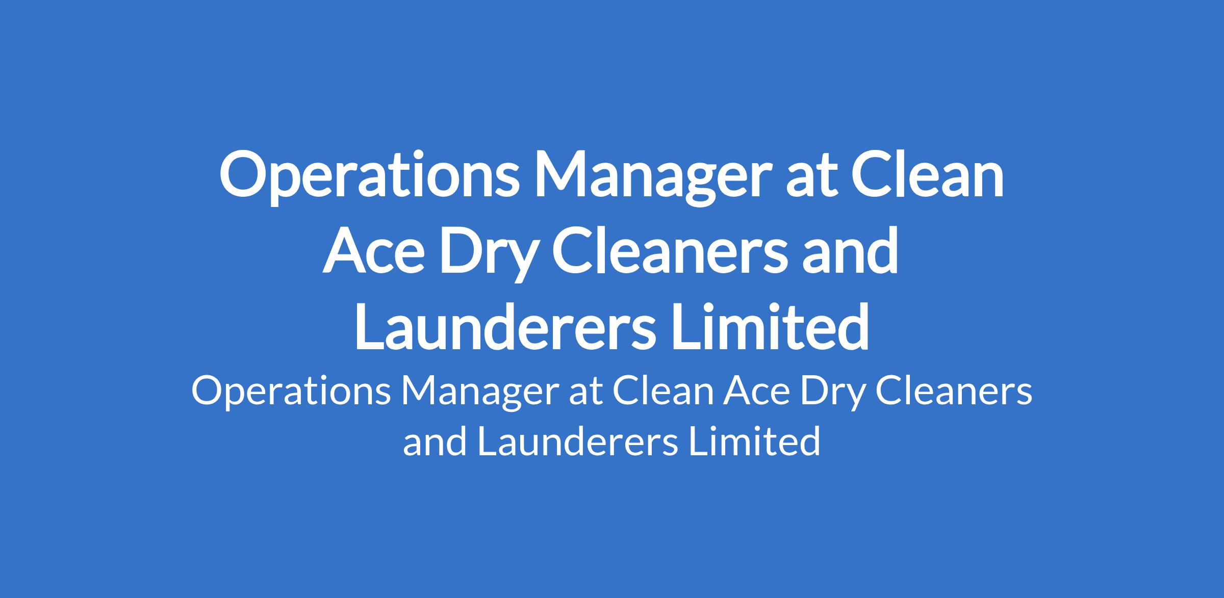 Clean Ace Dry Cleaners and Launderers Limited is recruiting to fill the position of: Operations Manager. The position is located in OPIC Estate (After Berger), Lagos State. Salary: N250,000 - N300,000 monthly. Interested candidates should possess relevant qualifications with a minimum of 4 years experience in Operations Management.