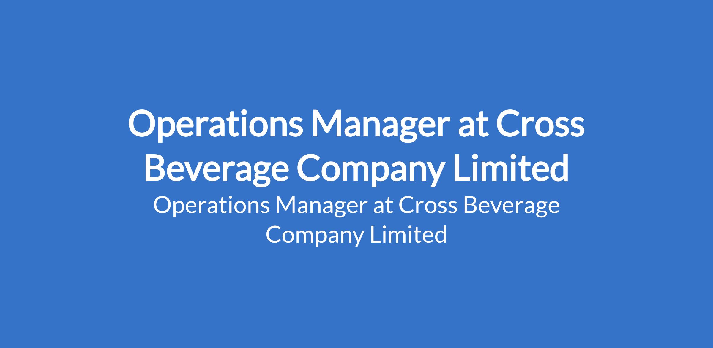 Cross Beverage Company Limited is recruiting to fill the position of: Operations Manager. The position is located in Ibadan, Oyo State. Salary: N80,000 - N100,000 monthly. Interested candidates should possess an OND / HND / B.Sc Degree in Supply Chain, Industrial Management, Engineering, Business Administration, or a related field with 2 - 5 years of hands-on operations or supply chain experience in an FMCG, manufacturing, or fast-paced production environment.