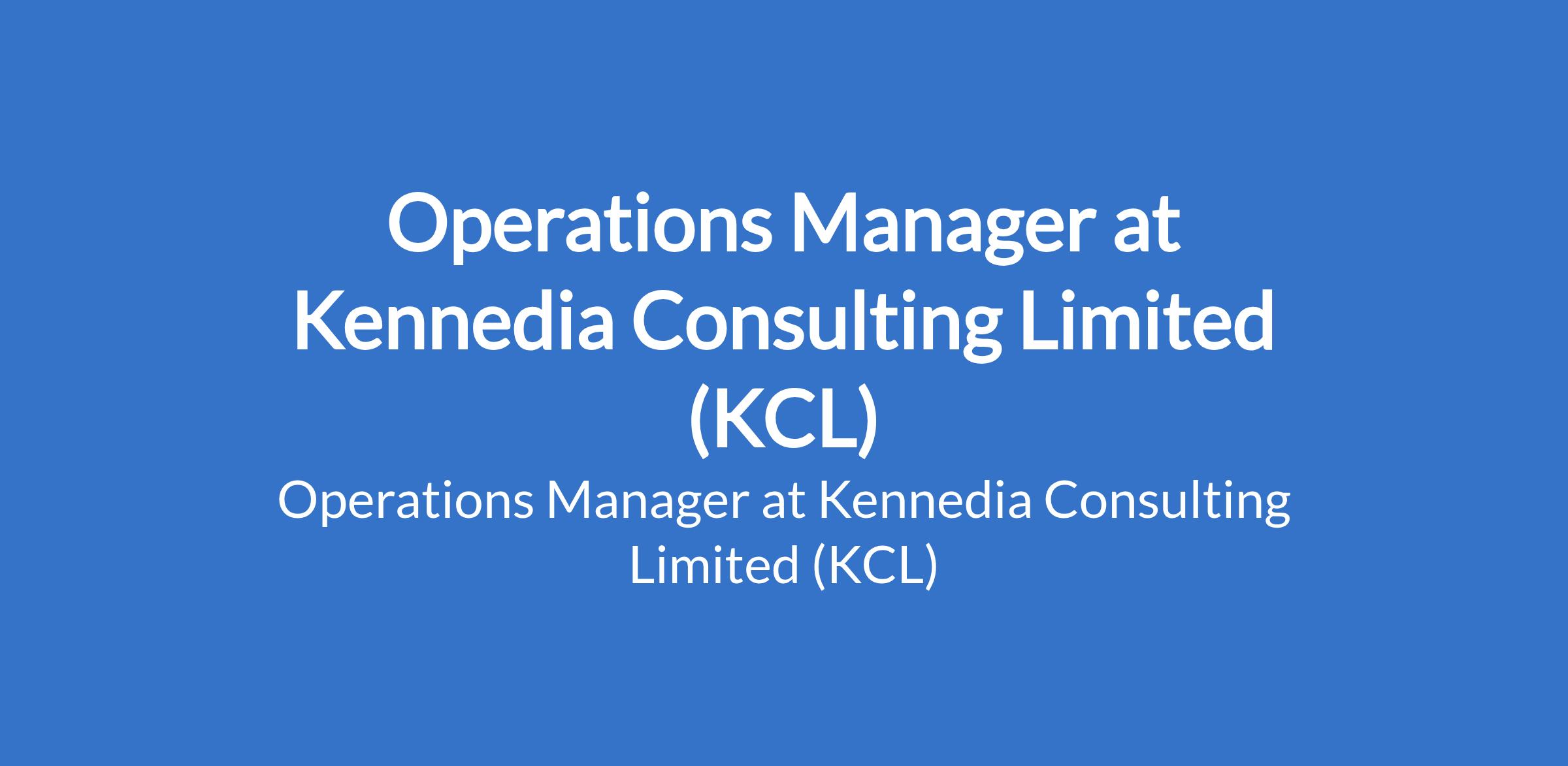 Kennedia Consulting Limited (KCL) is recruiting to fill the position of: Operations Manager. The position is located in Lagos State. Salary: N300,000- N600,000 / month. Interested candidates should possess a Bachelors Degree in Operations, Supply Chain, or related field with58 years experience in operations or supply chain management.