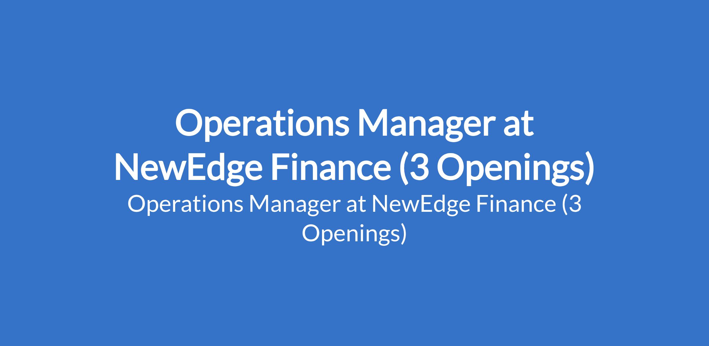 NewEdge Finance is recruiting to fill the position of: Operations Manager. The position is located in Ibadan - Oyo, Kaduna and Kano States. Salary: N150,000 monthly. Interested candidates should possess an M.Sc. / B.Sc. / HND / ND qualification with 1 - 4 years experience.