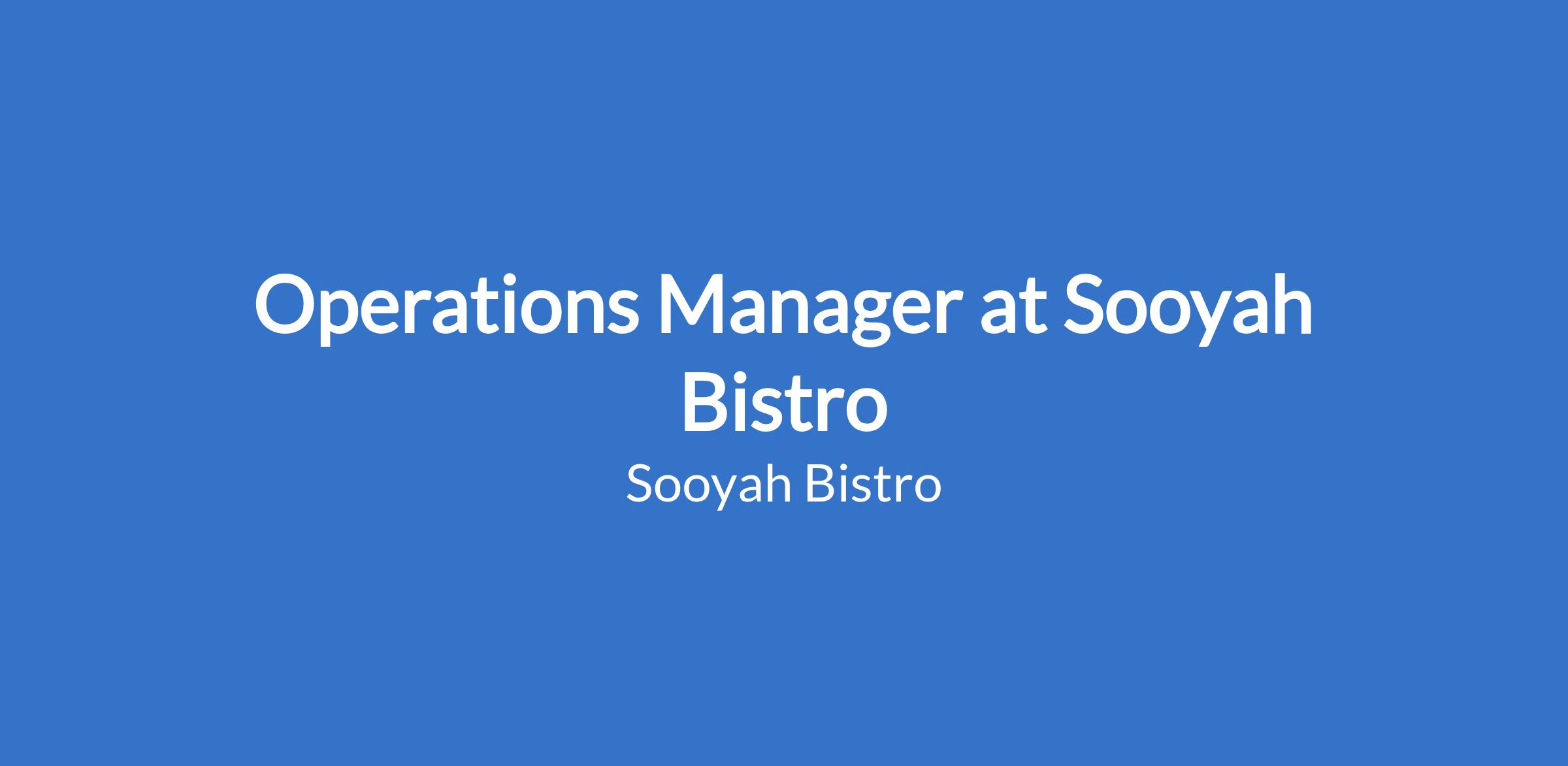 Operations Manager at Sooyah Bistro