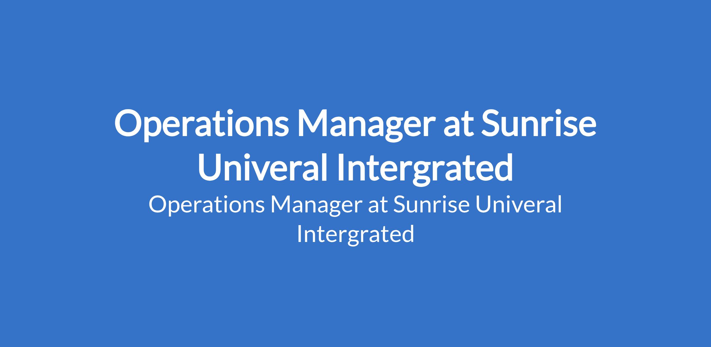 Sunrise Univeral Intergrated is recruiting to fill the position of: Operations Manager. The position is located in Ibadan, Oyo State. Interested candidates should possess an HND / BSc Degree in social science or related field with a minimum of 8 years of working experience in a similar capacity.