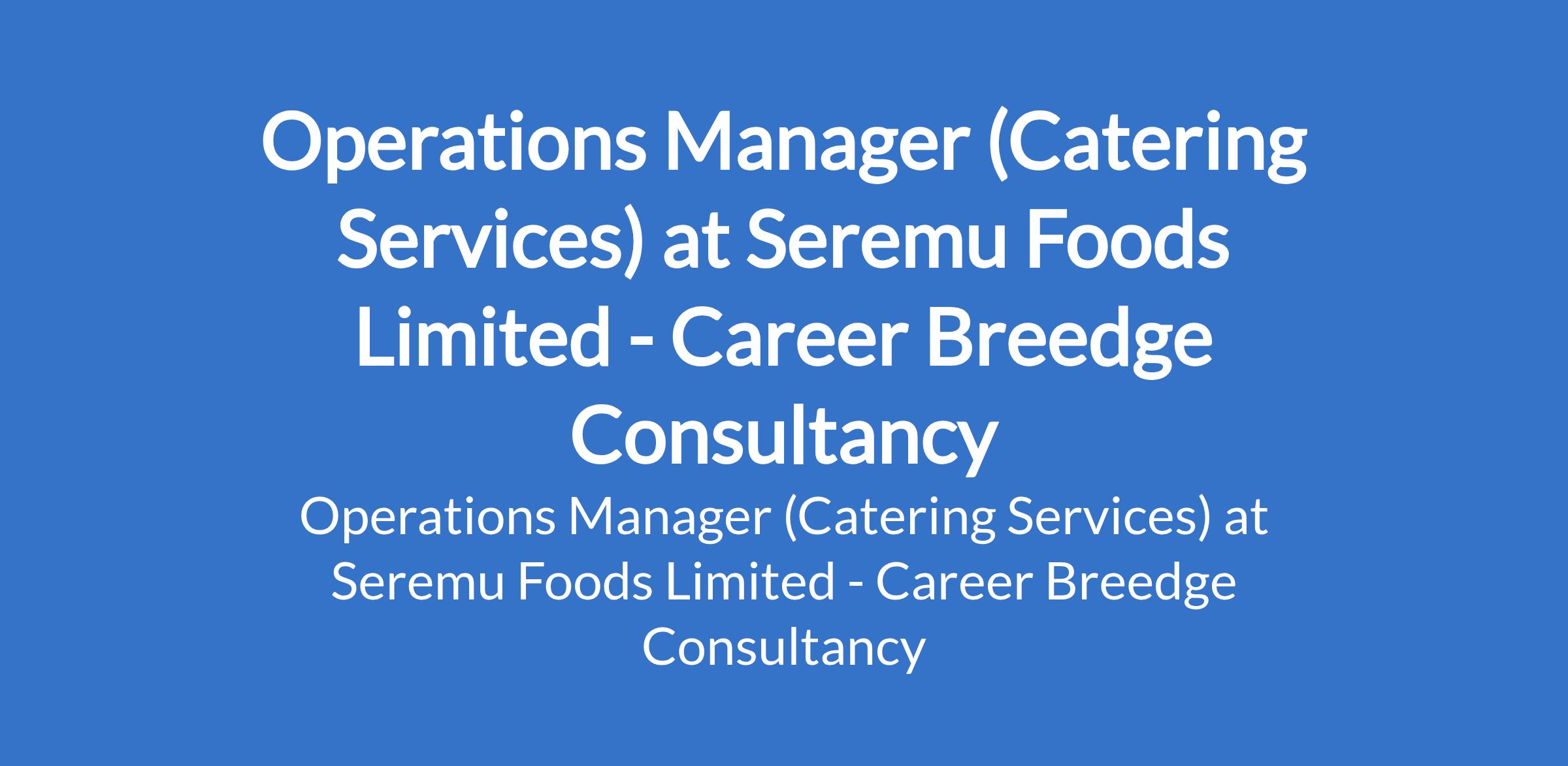 Career Breedge Consultancy - Our client, Seremu Foods Limited is recruiting to fill the position of: Operations Manager (Catering Services). The position is located in Port Harcourt, Rivers State. Salary: N250,000 - N300,000 per month. Interested candidates should possess a Bachelor's Degree / HND / Master's Degree / NCE / OND with 3 6 years of proven experience in catering operations management and must be 35 40 years of age.