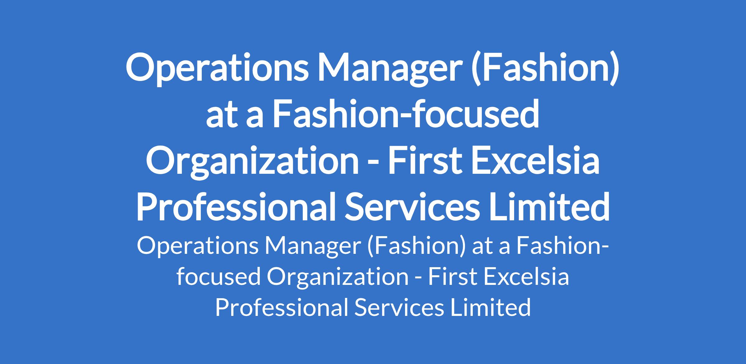 First Excelsia Professional Services Limited - Our client, a fashion-focused organization is recruiting to fill the position of: Operations Manager (Fashion). The position is located in Surulere, Lagos State. Interested candidates should possess a Bachelors Degree (BSc) in Business Administration, Fashion Design, Textile Technology, or a related field with a minimum of 4 years experience in an operations or management role within the fashion, garment, textile, or apparel industry.