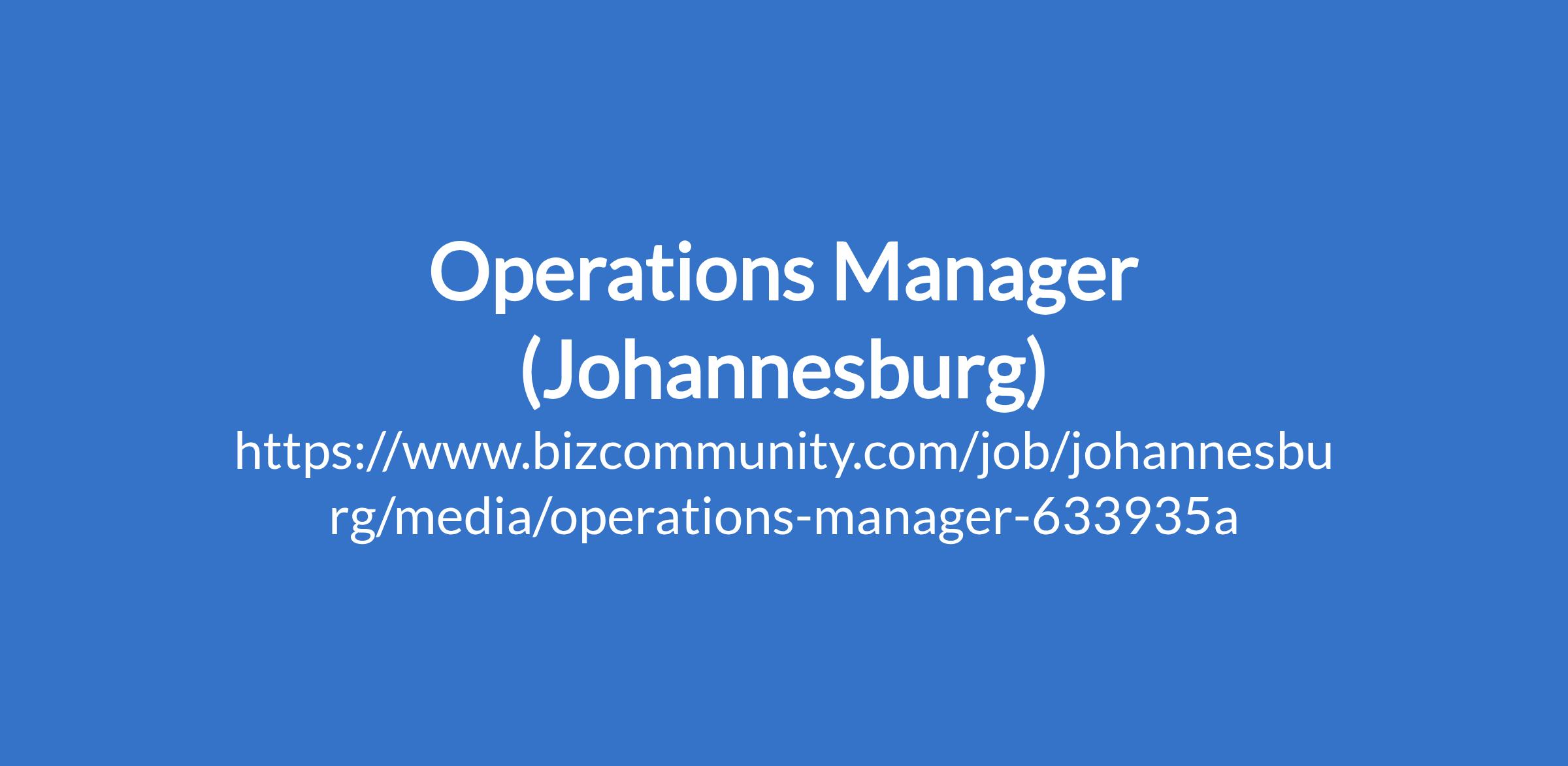 Operations Manager (Johannesburg)