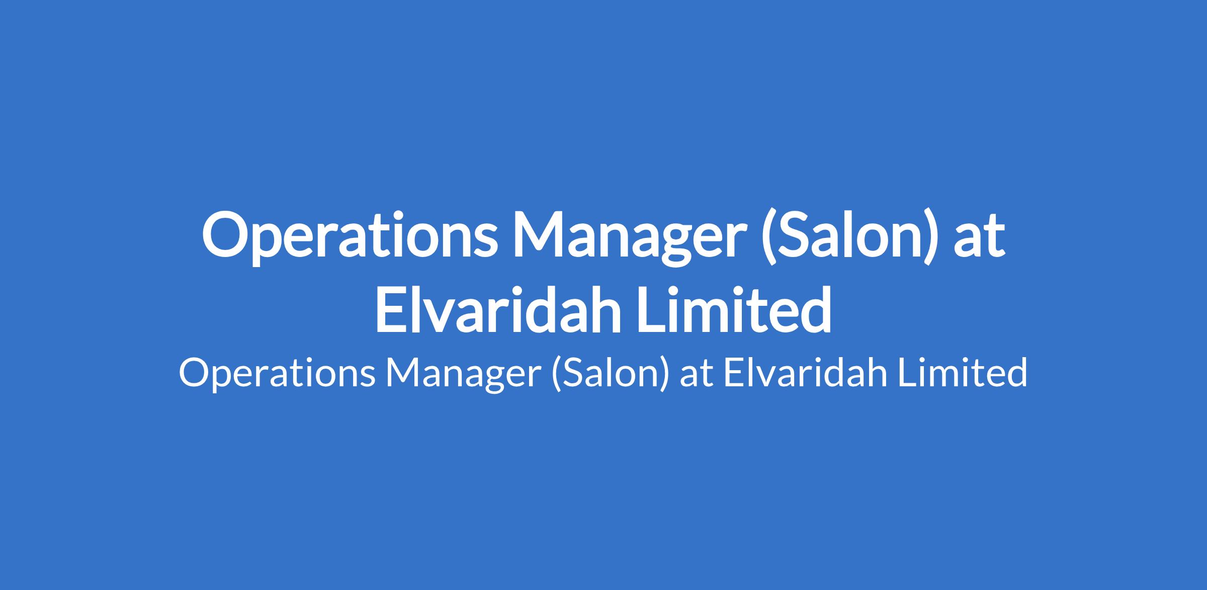 Elvaridah Limited is recruiting to fill the position of: Operations Manager (Salon). The position is located in Lagos State. Interested candidates should possess a Bachelors Degree in Business Administration, Management, or a related field (preferred), with 2 - 3 years of experience in operations management, preferably in a salon, spa, or hospitality setting.