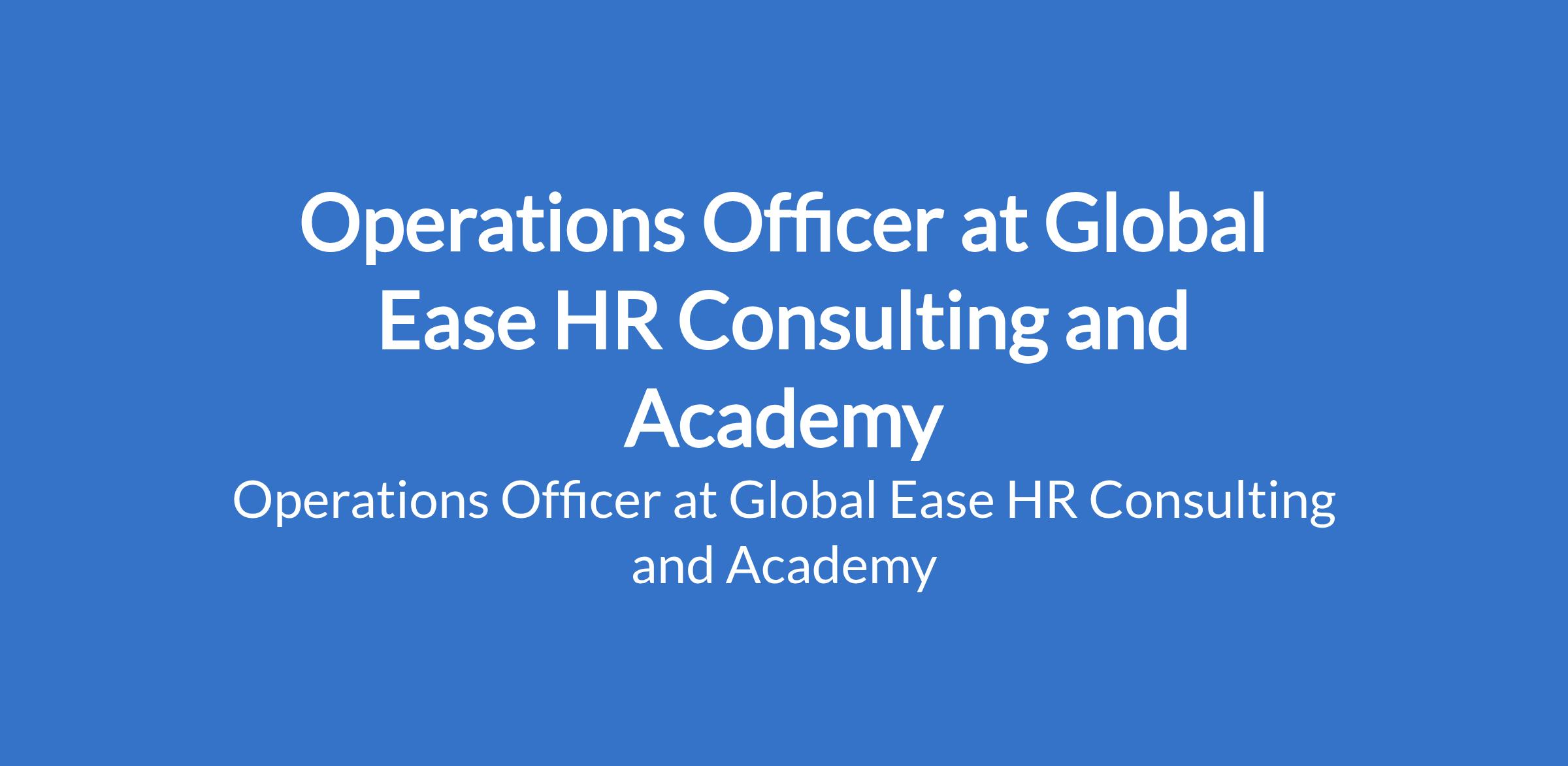 Operations Officer at Global Ease HR Consulting and Academy