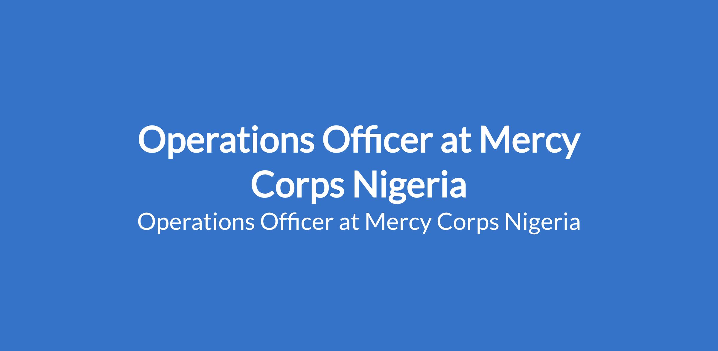 Mercy Corps Nigeria is recruiting to fill the position of: Operations Officer. The position is located in Damaturu, Yobe State. Interested candidates should possess a Bachelors Degree in supply chain management, Logistics, Business Administration, or a related field with a minimum of 3 5 years of experience in operations, procurement, logistics, warehouse management, or supply chain operations.