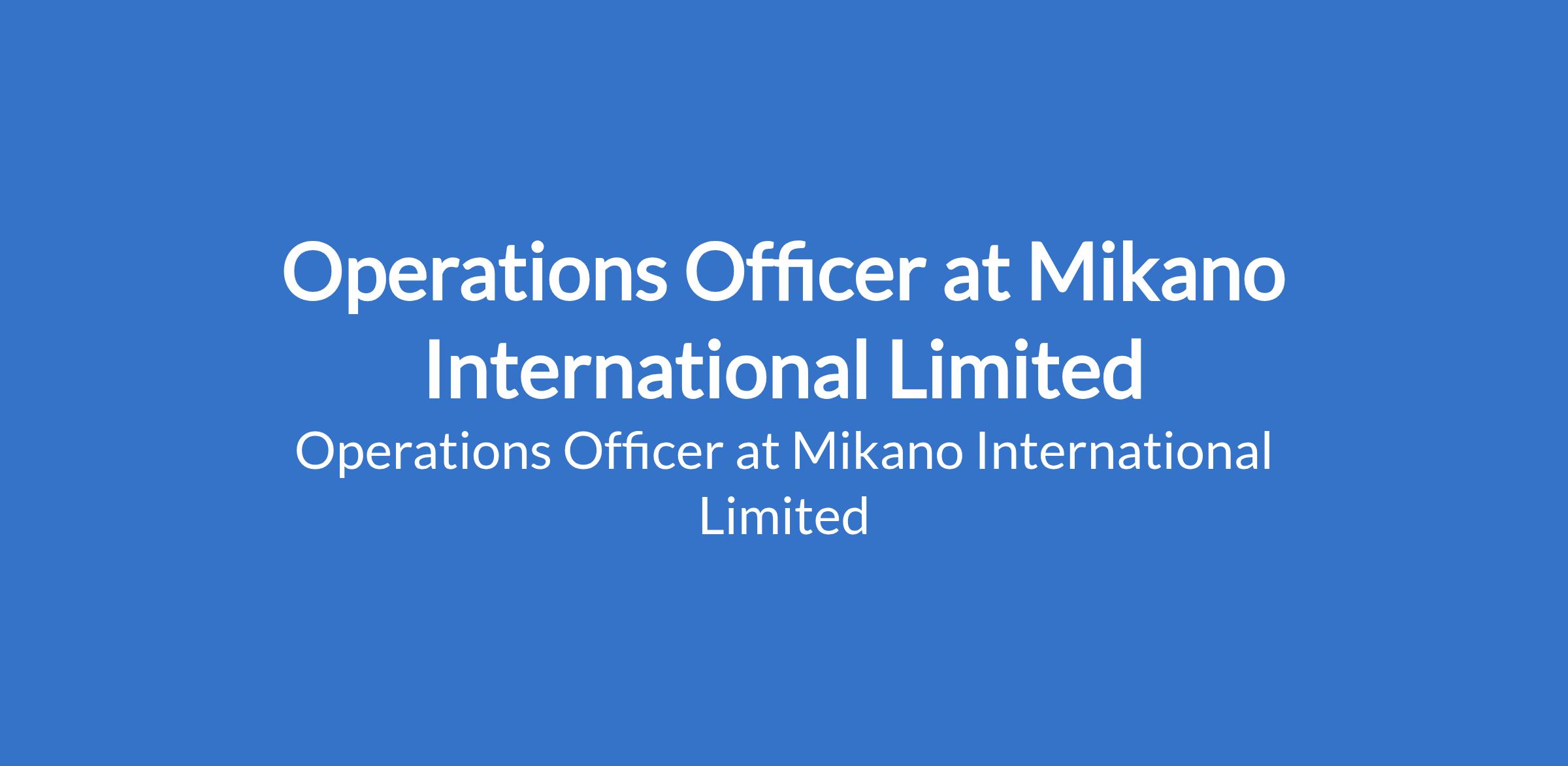 Mikano International Limited is recruiting to fill the position of: Operations Officer. The position is located in Ikeja, Lagos State. Interested candidates should possess a B.Sc / HND in Mechanical / Electrical Engineering or related field disciplines with a minimum of 2 years experience.