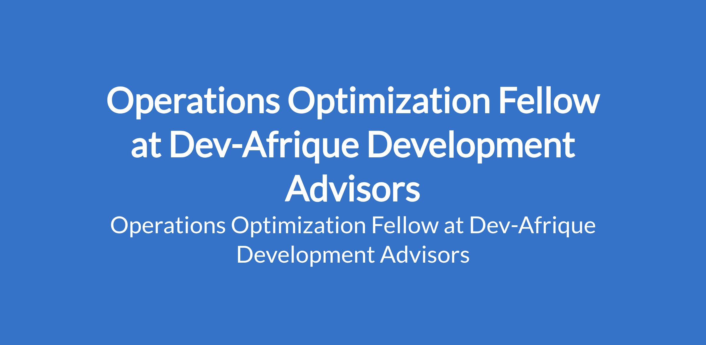Dev-Afrique Development Advisors is recruiting to fill the position of: Operations Optimization Fellow. Interested candidates should possess a Bachelors Degree in Business Operations Management, Information Systems or a related field with at least 3 years of experience.