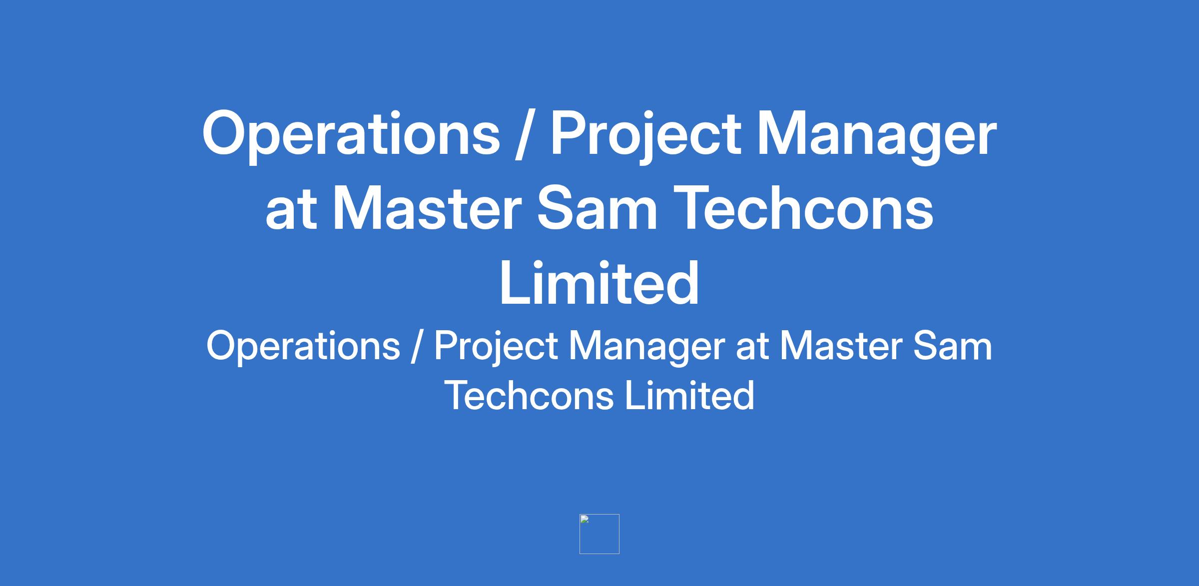 Master Sam Techcons Limited is recruiting to fill the position of: Operations / Project Manager. The position is located in Asaba, Delta State. Salary: N70,000 - N150,000 / month. Interested candidates should possess a B.Sc in Engineering, Business Administration, or related field with 2+ years of experience in project management or operations.