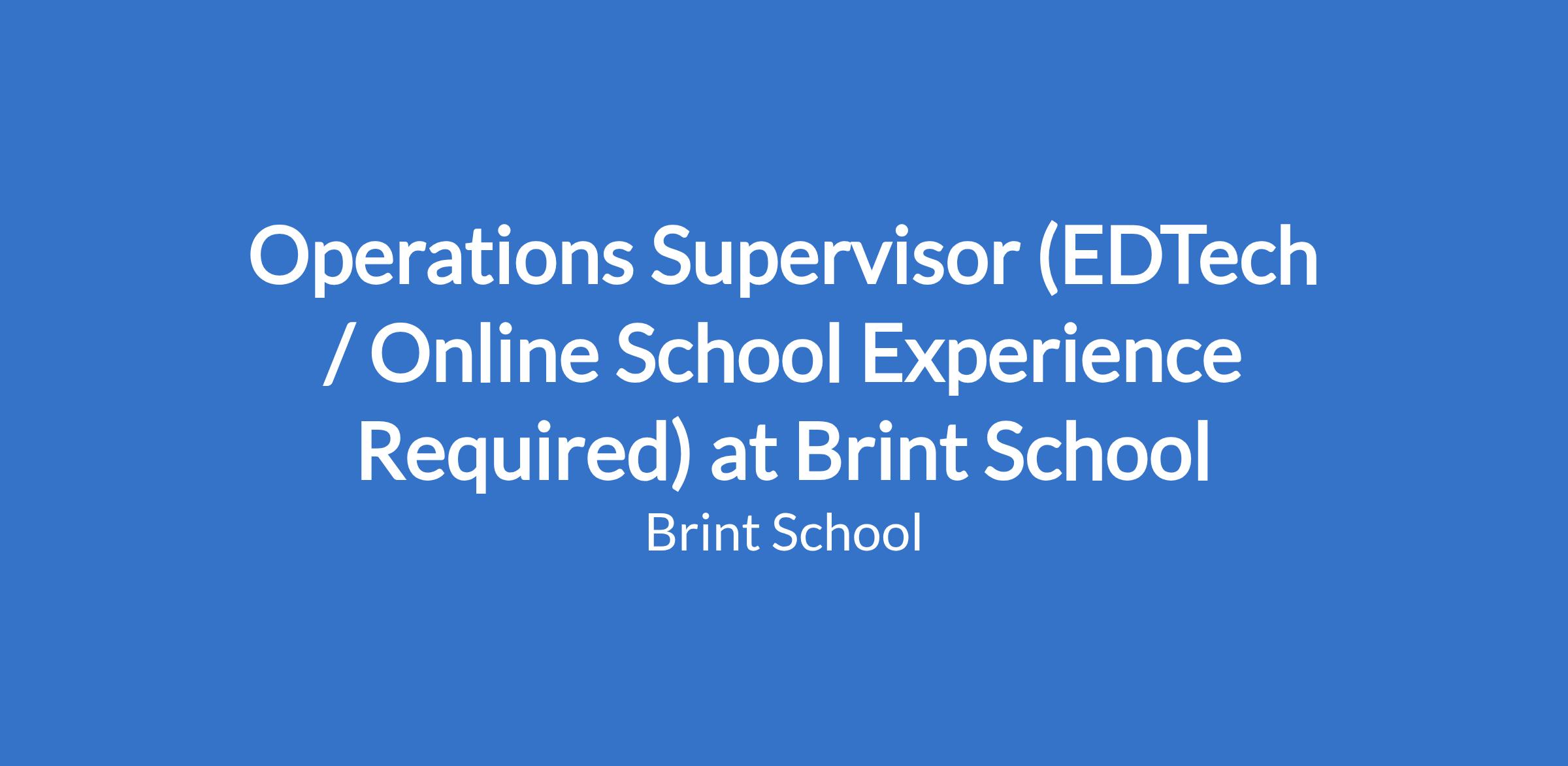 Operations Supervisor (EDTech / Online School Experience Required) at Brint School