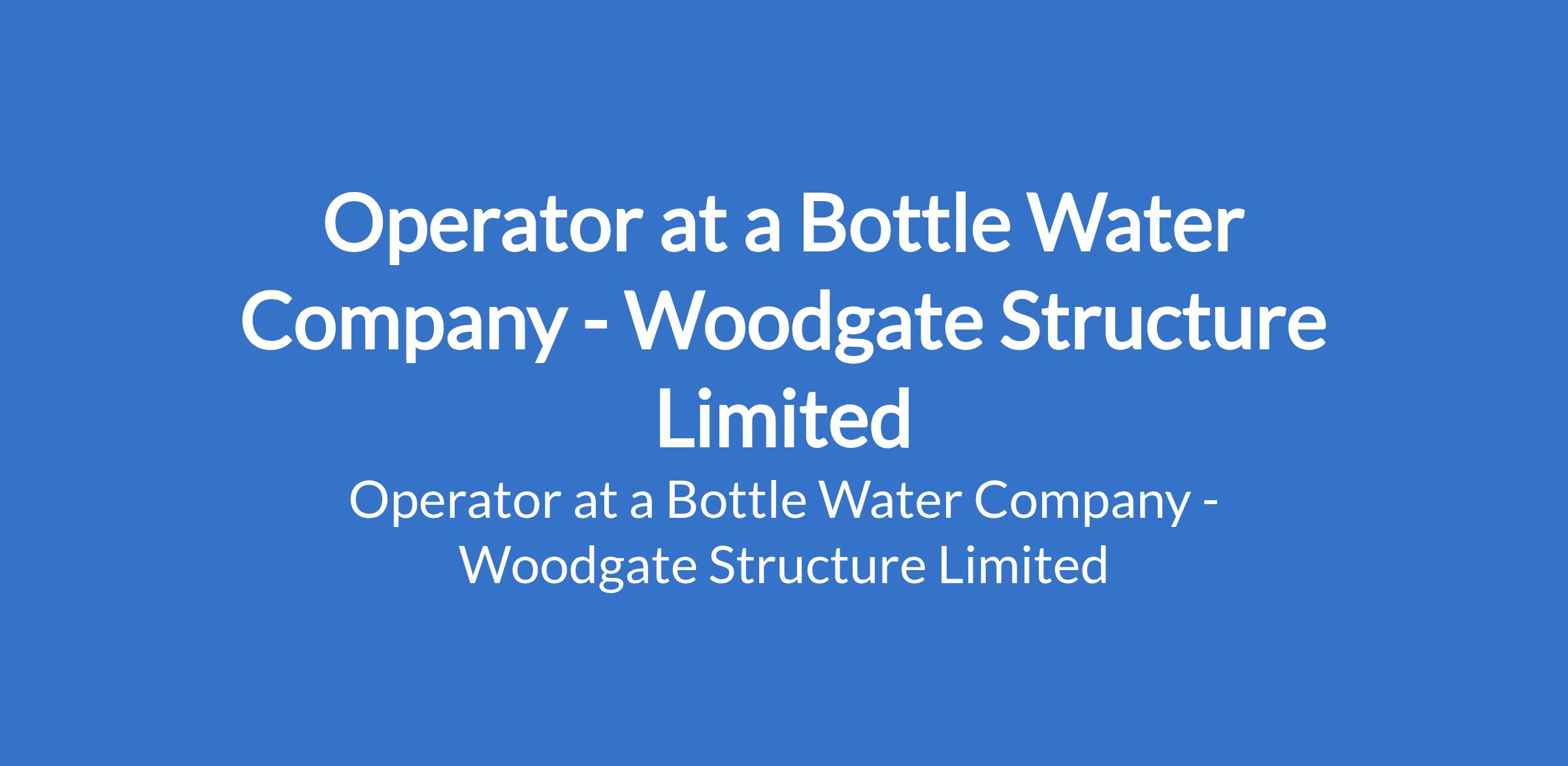Woodgate Structure Limited - Our client, a bottle water company is recruiting to fill the position of: Operator at a bottle water company. The position is located in Kubwa Abuja (FCT) , State. Interested candidates should possess a relevant qualification.