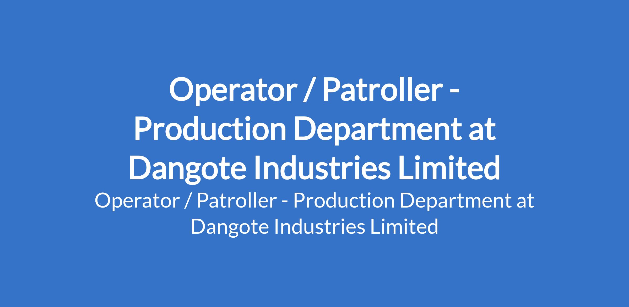 Dangote Industries Limited is recruiting to fill the position of: Operator / Patroller - Production Department. The position is located in Ibese Plant, Ogun State. Interested candidates should possess a School Certificate or its equivalent in any discipline with zero (0) to three (3) years relevant work experience.
