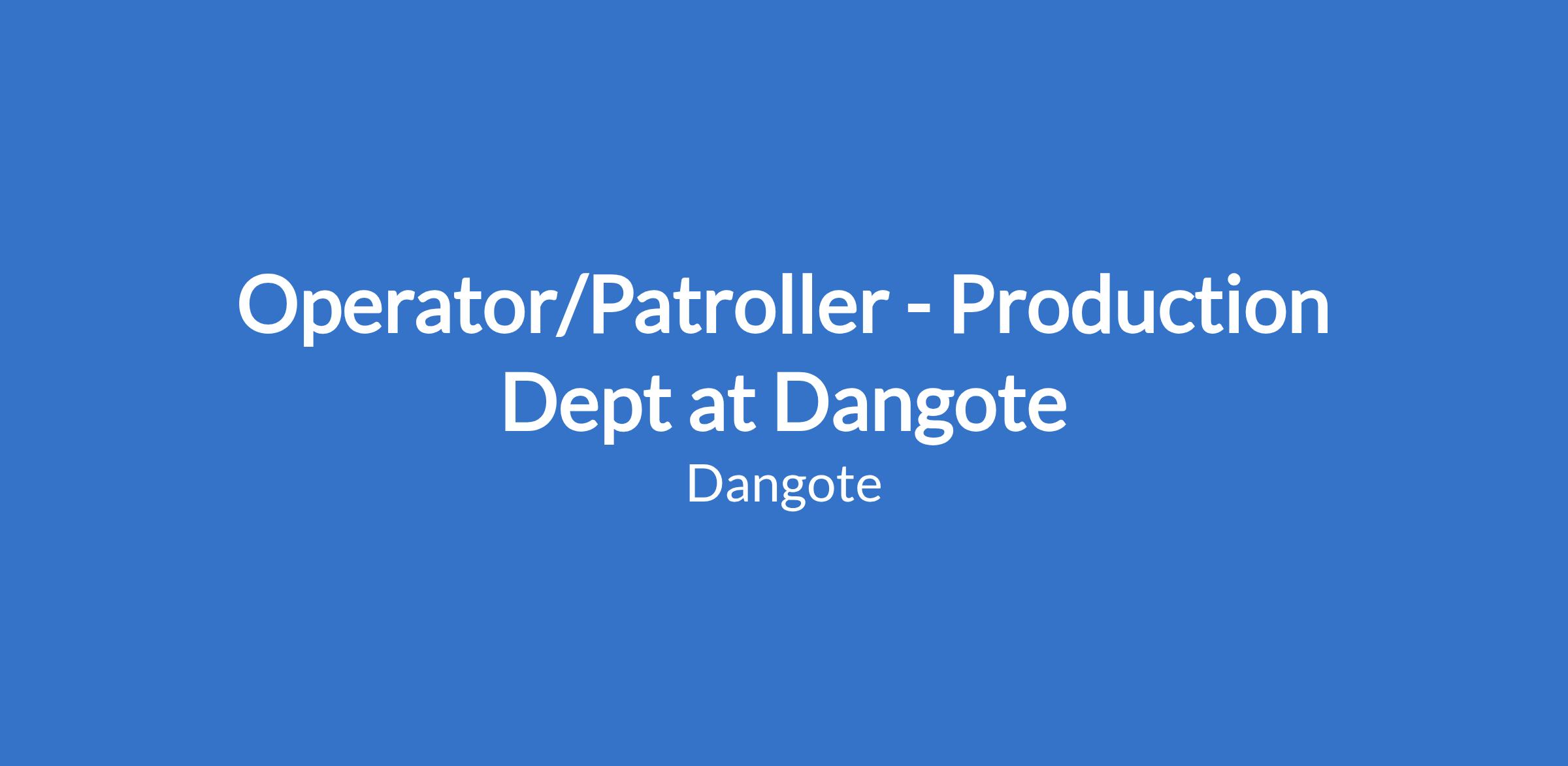 Operator/Patroller - Production Dept at Dangote