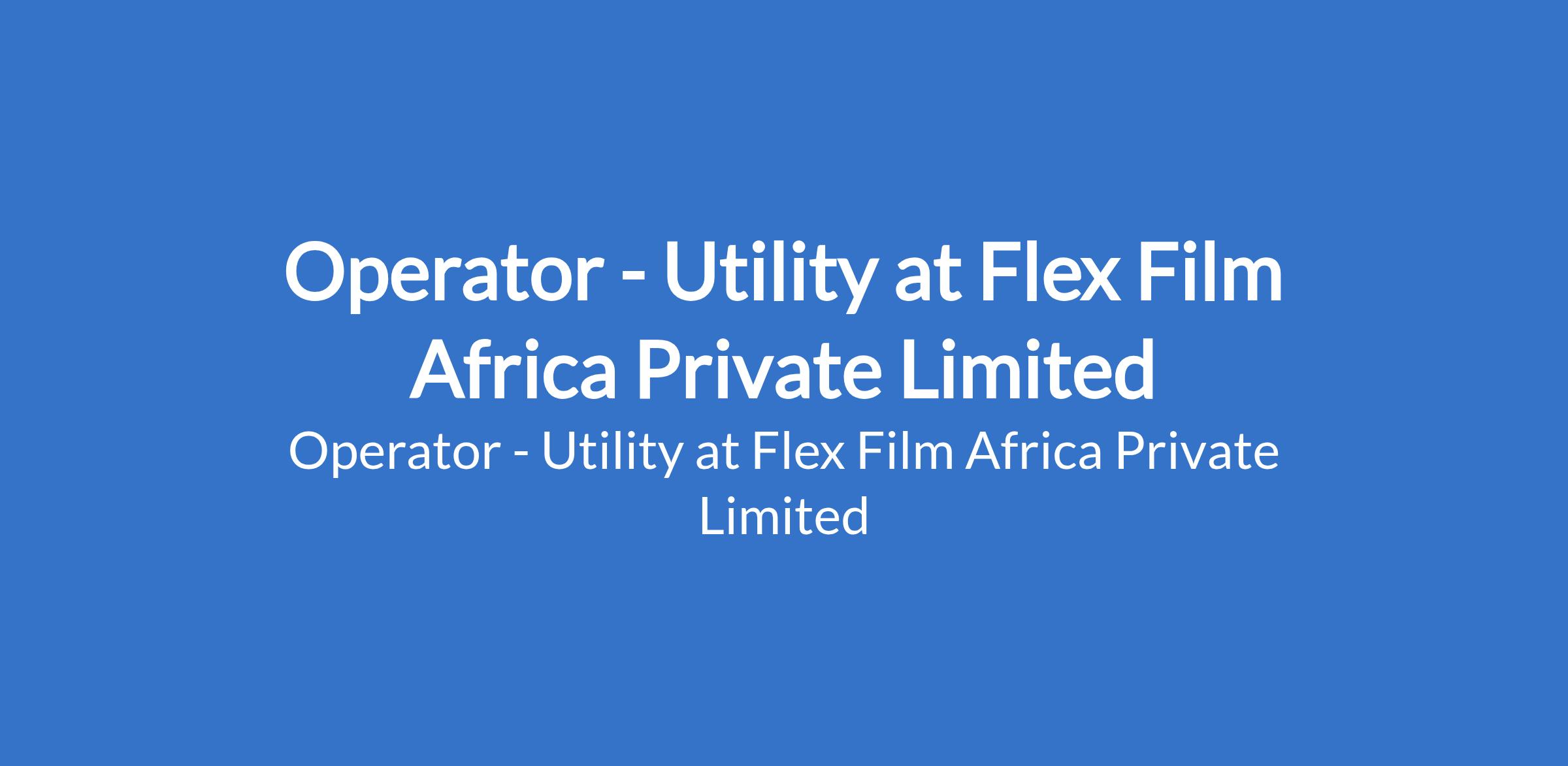 Operator - Utility at Flex Film Africa Private Limited