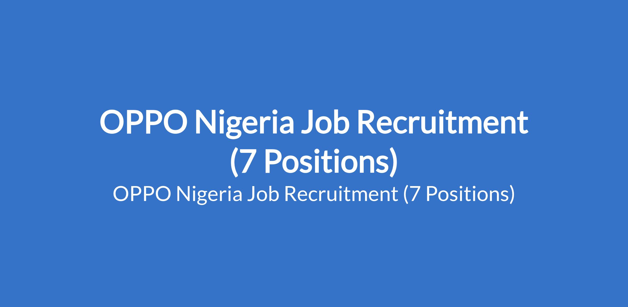 OPPO Nigeria Job Recruitment (7 Positions)