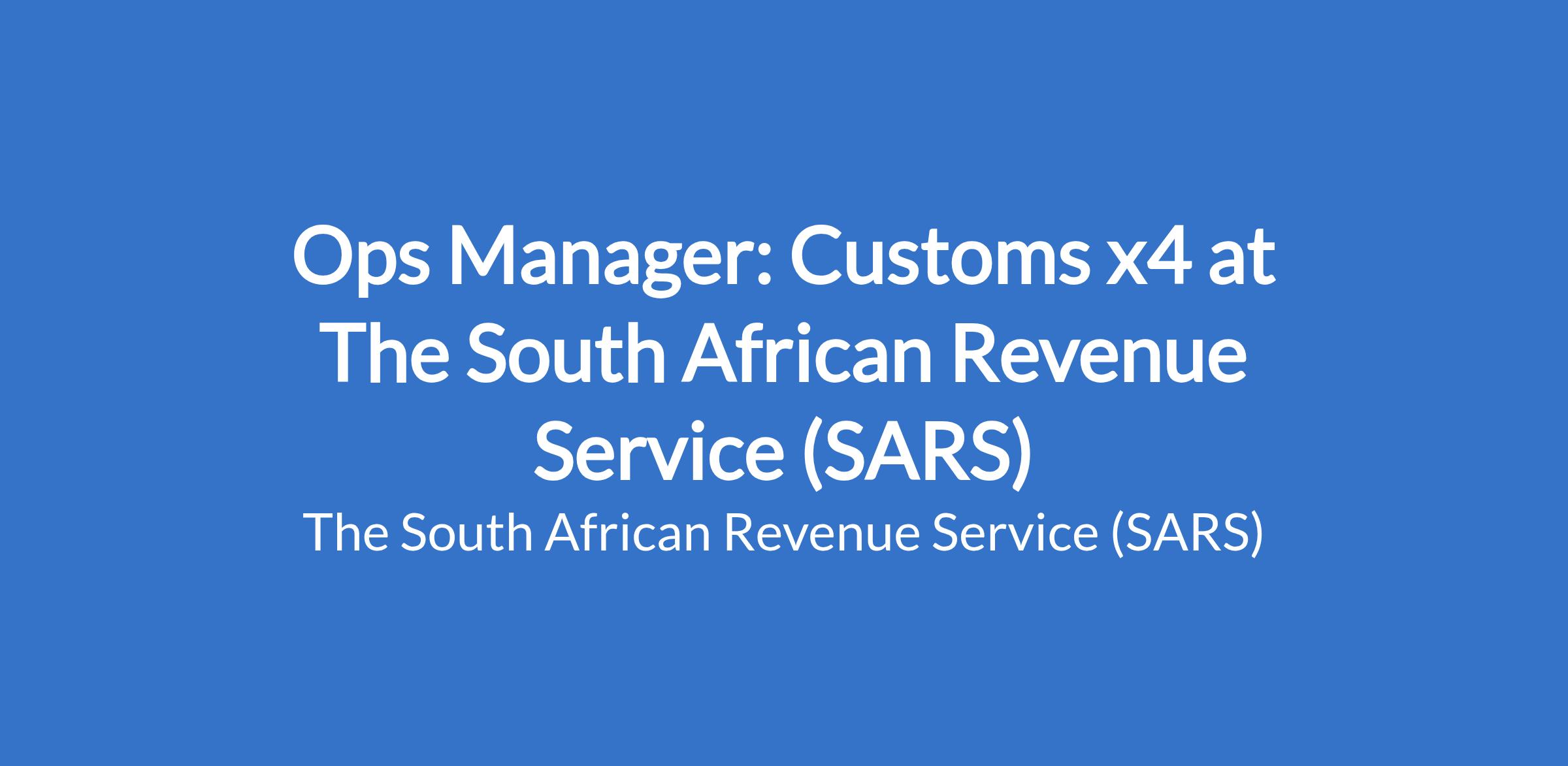 Senior Certificate (NQF 4) and 10 years' experience in the Customs & Excise environment, of which 1 year at a supervisory level, with experience in Ports of Entry operations as an added advantage.