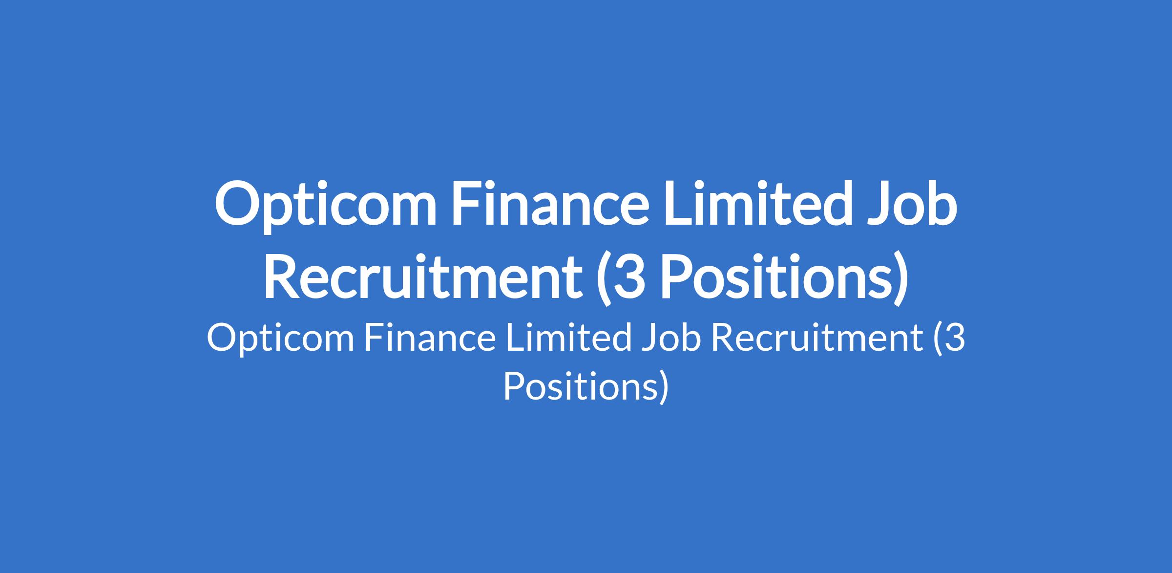 Opticom Finance Limited Job Recruitment (3 Positions)