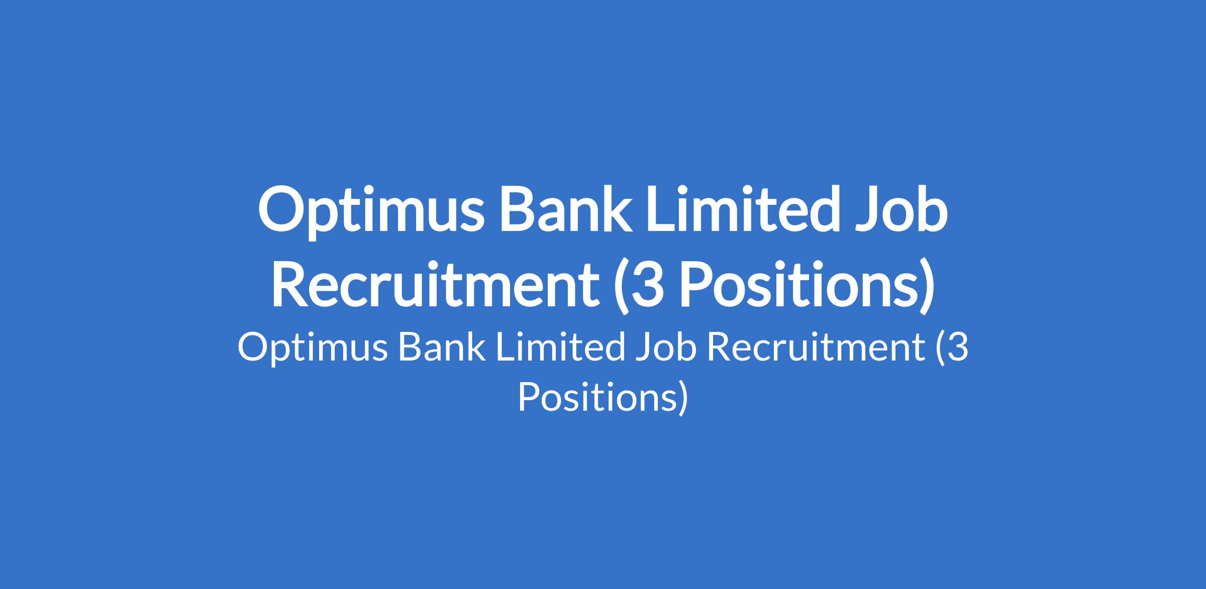 Optimus Bank Limited Job Recruitment (3 Positions)