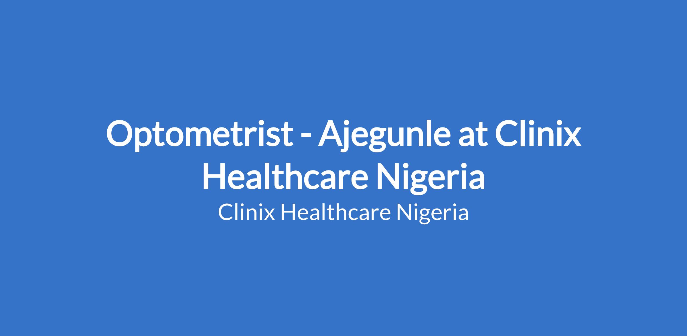 Clinix Healthcare is seeking a skilled and patient-focused Optometrist to join our eye care team at the Ajegunle branch. We are dedicated to delivering high-quality vision and eye health services, and we are looking for a professional passionate about providing accurate eye examinations and excellent patient outcomes.