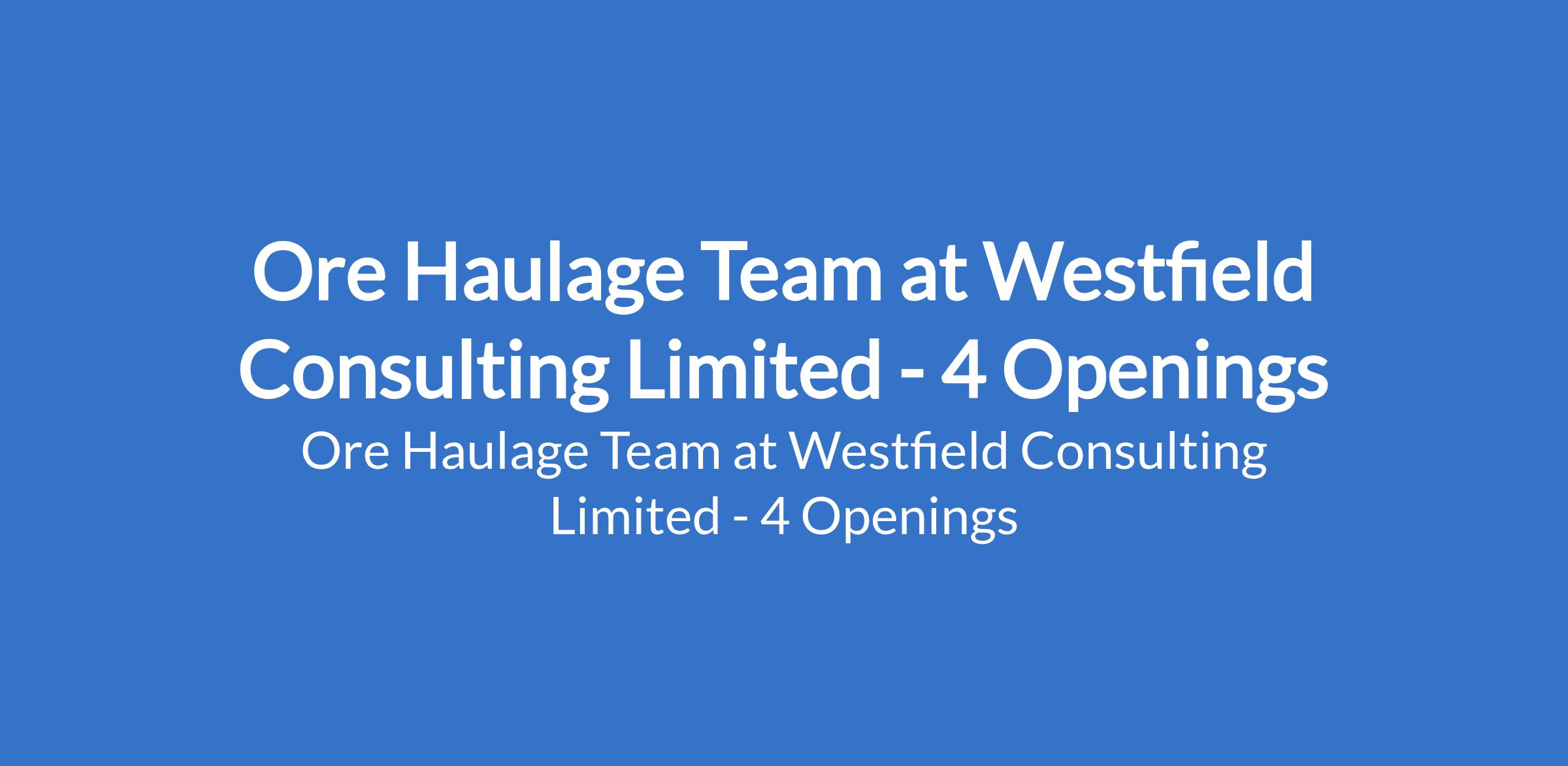 Westfield Consulting Limited - Our client, with interest in Real Estate, Energy, Agriculture, Mining, Maritime and Aviation company is recruiting to fill the position of: Ore Haulage Team. The position is located in Lapai, Niger State. Interested candidates should possess relevant qualifications with a minimum of 2 years experience in the position being applied.