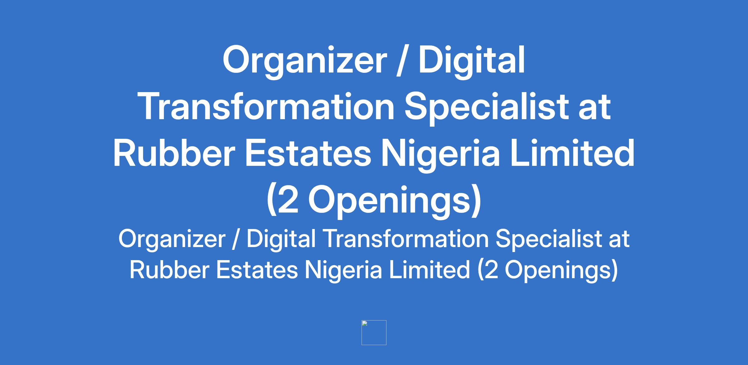 Rubber Estates Nigeria Limited is recruiting to fill the position of: Organizer / Digital Transformation Specialist. The position is located in Araromi, Obu Odigbo LGA - Ondo and Edo States. Interested candidates should possess a B.Eng. / BSc Degree in Engineering / Sciences with a minimum of 3 years experience in a similar role.