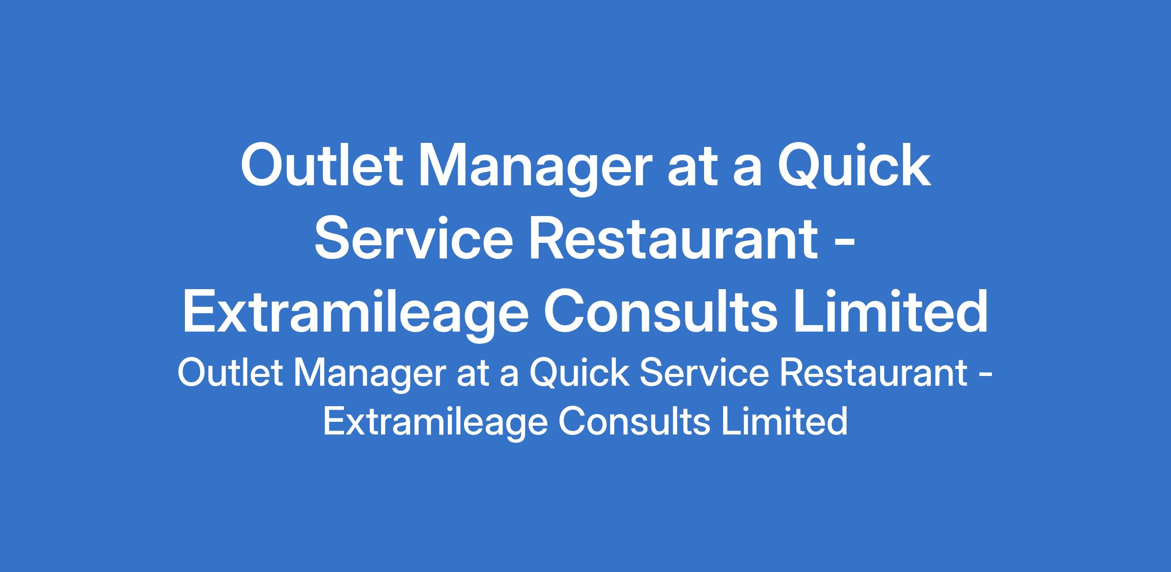 Extramileage Consults Limited - Our client, a Quick Service Restaurant is recruiting to fill the position of: Outlet Manager. The position is located in Victoria Island, Lagos State. Salary: N300,000 monthly. Interested candidates should possess an OND/HND or B.Sc. in Hospitality, Business Administration, or related field with 4-5 years in a supervisory or managerial role in a restaurant or hospitality setting.