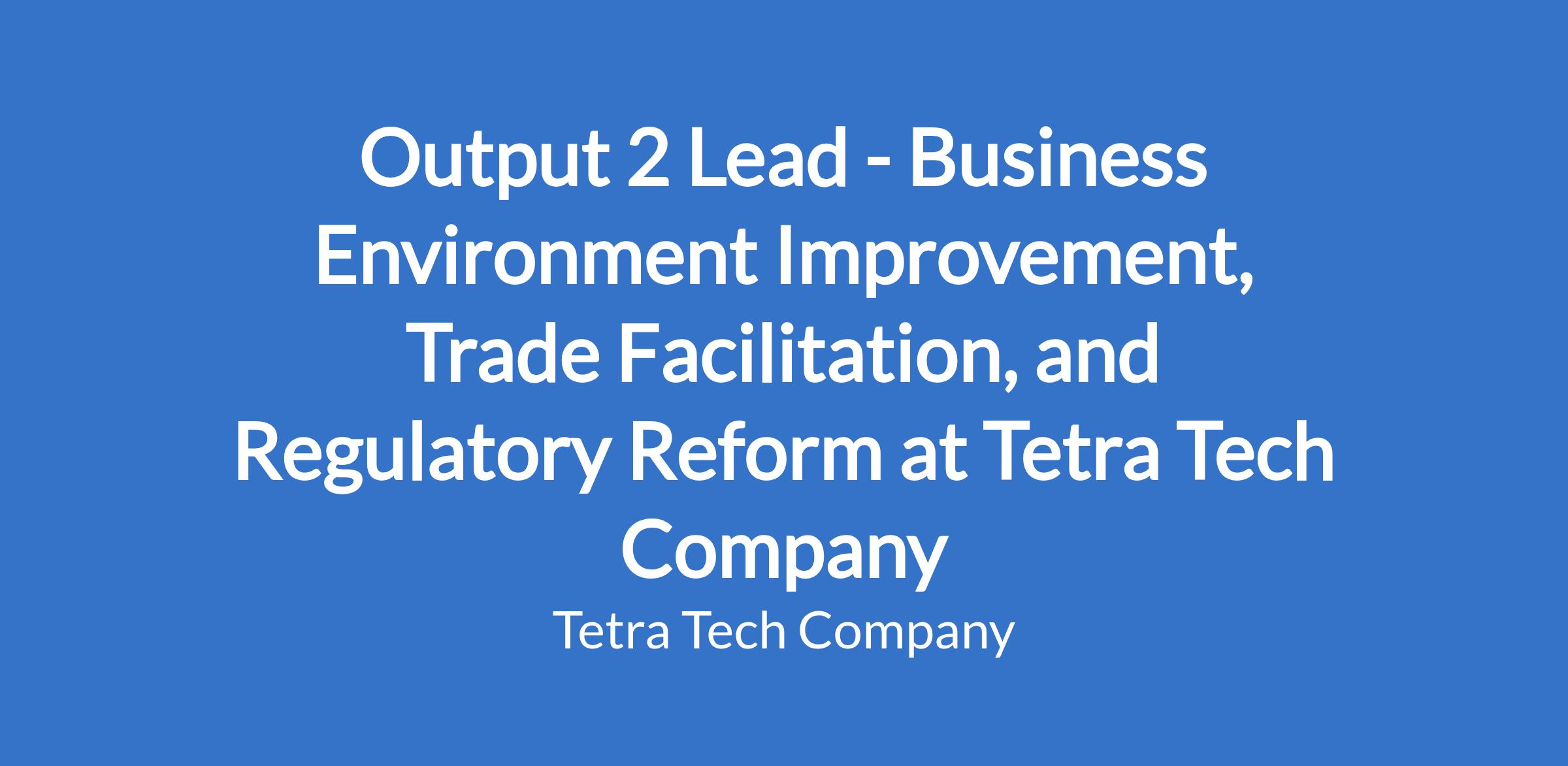Output 2 Lead - Business Environment Improvement, Trade Facilitation, and Regulatory Reform at Tetra Tech Company