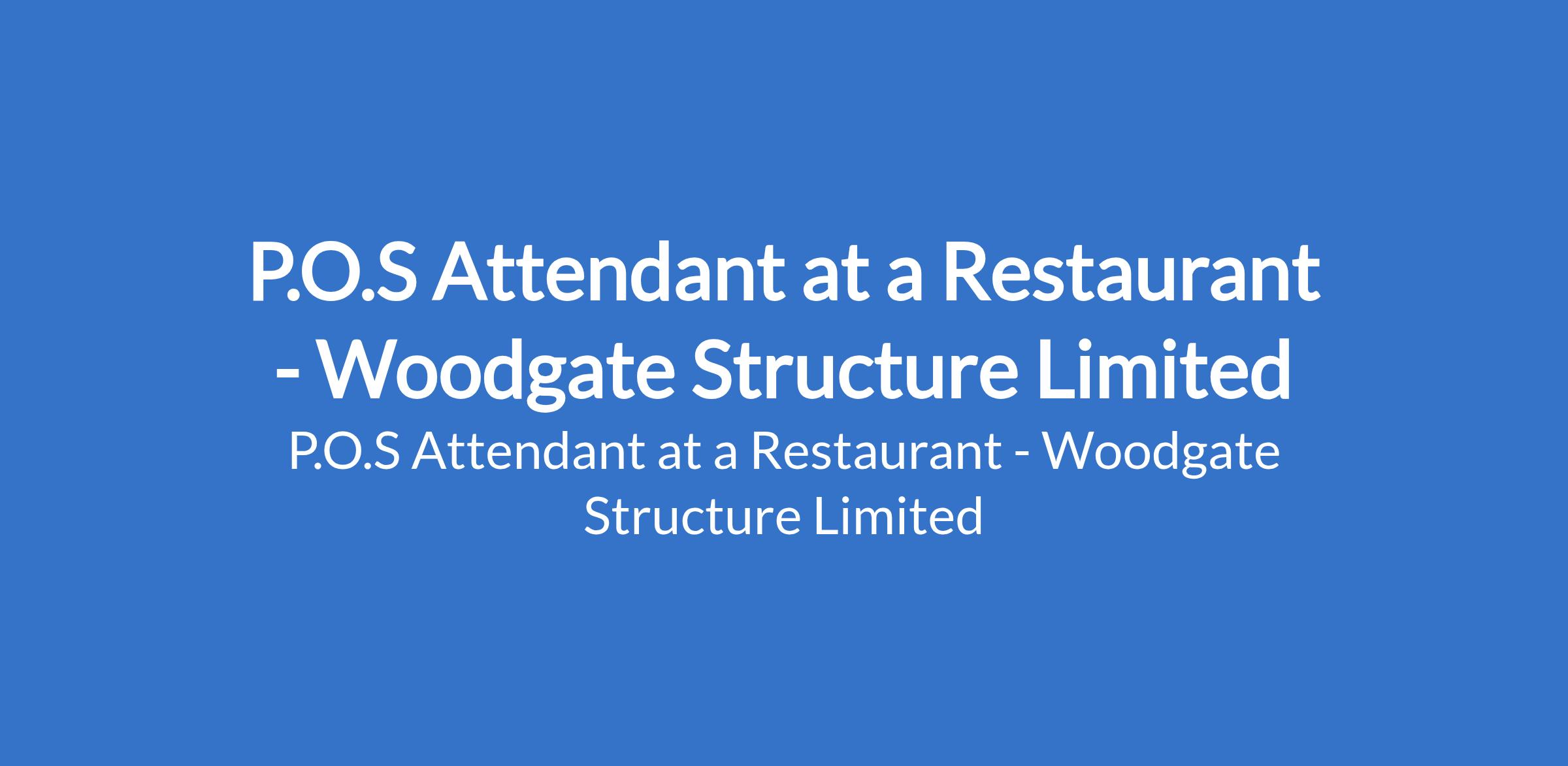 Woodgate Structure Limited - Our client, a Restaurant is recruiting to fill the position of: P.O.S Attendant. The position is located in Choba, Rivers State. Salary: N40,000 monthly. Interested candidates should possess relevant qualifications.