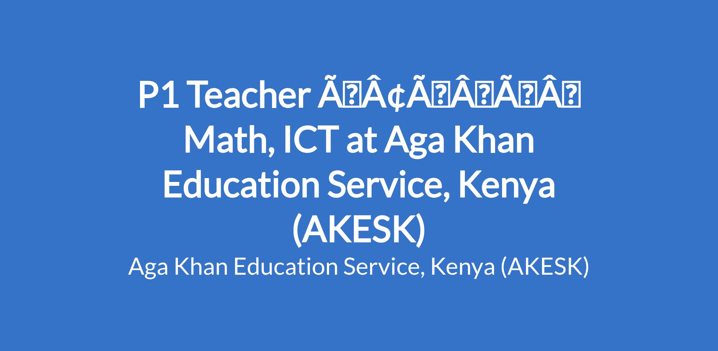 P1 Teacher – Math, ICT at Aga Khan Education Service, Kenya (AKESK)