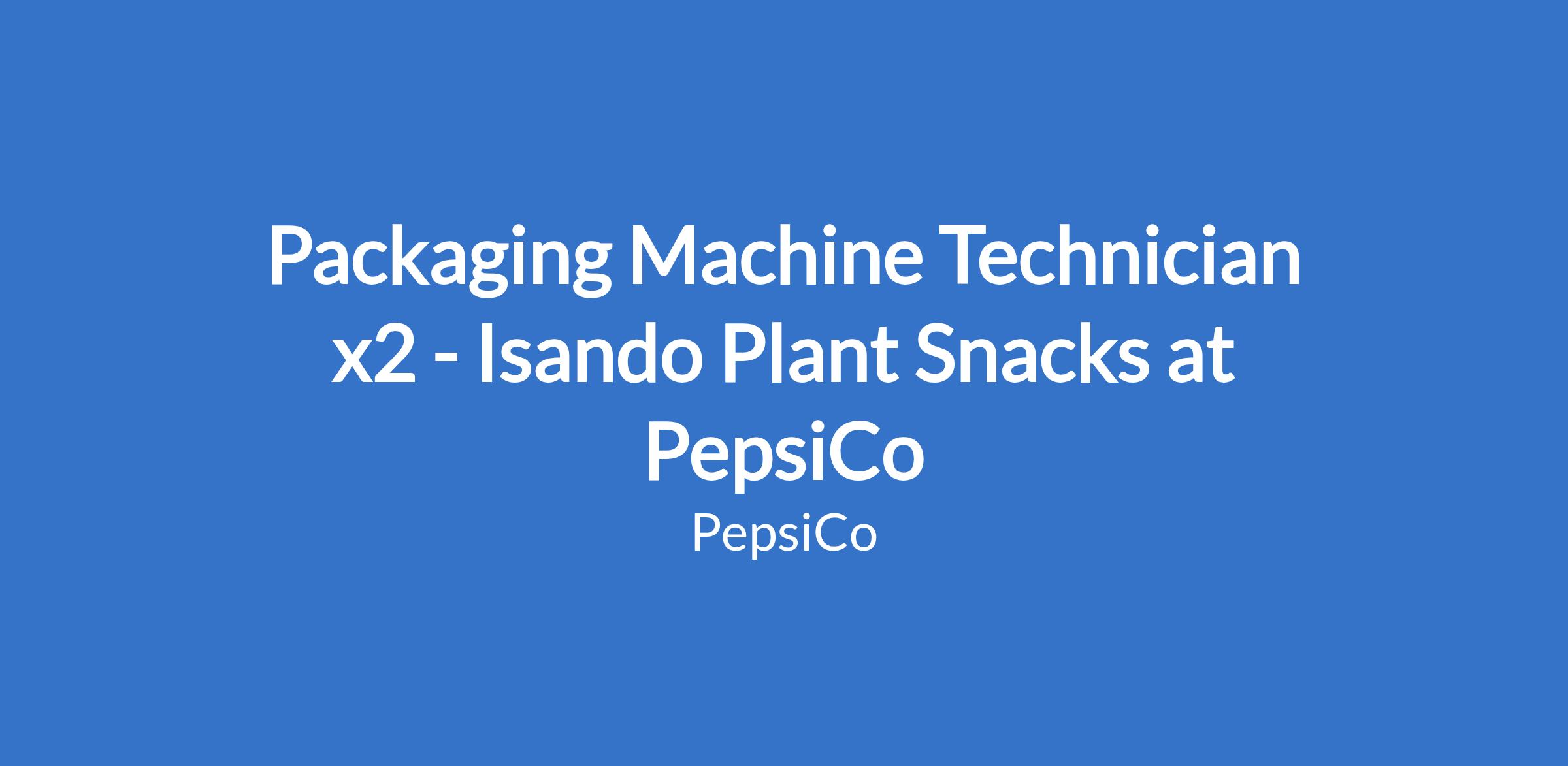 Packaging Machine Technician x2 - Isando Plant Snacks at PepsiCo