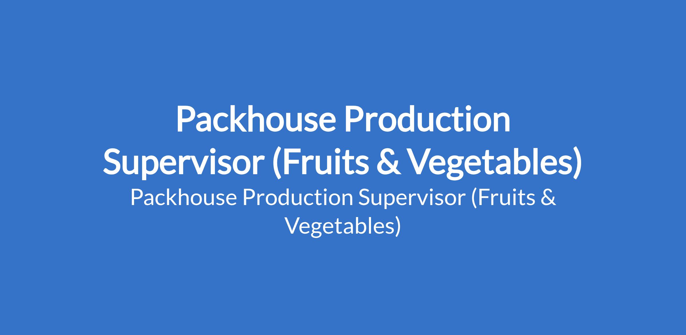 Packhouse Production Supervisor (Fruits & Vegetables)